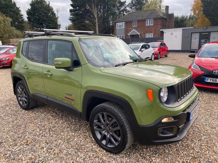 75th ANNIVERSARY EDITION+6.5 INCH TOUCHSCREEN SATELLITE NAVIGATION SYSTEM+UCONNECT DAB RADIO+UCONNECT BLUETOOTH+LANE DEPARTURE WARNING+DUAL ZONE CLIMATE CONTROL AIR-CONDITONING+DAYTIME RUNNING LIGHTS+LUXURIOUS HEATED SEATS AND MULTIFUNCTION STEERING WHEEL+FRONT & REAR PARKING ASSISTANCE+JUNGLE GREEN PAINT+18 INCH 75th ANNIVERSARY EDITION BRONZE COLOURED ALLOY WHEELS. At Haverhill Car Xchange we would like to offer you our 75th Anniversary Edition SUV which features unique styling elements like bronze accents Beats by Dre Audio System, Heated Seats and Steering Wheel along with specialized stitching. This model came with Specific exterior Colours including Jeep exclusive Greens and features an open-air roof panel and various advanced safety and technology. Excellent Specification Includes a 6.5 Inch Touchscreen which features Satellite Navigation System, Uconnect Live, Uconnect DAB Radio, Uconnect Bluetooth, USB Connectivity, Aux-In, 12 Volt Power Socket, Lane Departure Warning Plus, Dual Zone Climate Control Air-Conditioning, Cruise Control with Speed Limiter, EcoDrive-Drive Monitoring System, Electric Windows, Body Coloured Bumpers/Door Handles and Door Mirrors with Integrated Side Indicators, Front Grille with Bronze Coloured Grille Ring, Heated Seats, Daytime Running Lights, Front Fog Lights with Bronze Coloured Bezels, Front and Rear Parking Assistance, Heated Multifunction Steering Wheel, Electric Parking Break, Privacy Glass, 18 Inch Alloy Wheels, Power Steering, Hill Start Assist, ABS Breaking System, Airbags, Alarm, Immobiliser and Remote Central Locking.