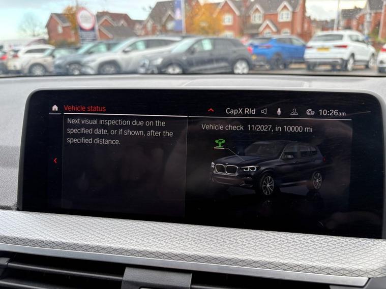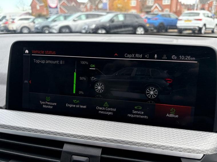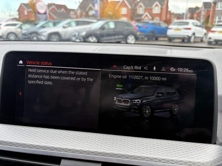 Boasting exceptionally low mileage for its age, this 2021 BMW X3 20d M Sport presents a superb ownership proposition with only one previous owner and a full service history. This Euro 6 compliant, four wheel drive model features a 2.0L diesel hybrid engine, offering an impressive 47 mpg fuel economy. The vehicle comes with a clear vehicle history check and a warranty for three months, ensuring peace of mind. Its MOT is valid until September 2026, and it is equipped with the desirable Technology Package, including a Head Up Display, and a comprehensive Parking Assistant system with front and rear sensors, and a rear camera. Further enhancing the driving experience, this X3 includes a Reversing Assist Camera, a Rain Sensor with Automatic Headlight Activation, and Adaptive LED Headlights. These features collectively demonstrate a higher standard compared to other vehicles in its class, highlighting its advanced technology and convenience. The low CO2 emissions also contribute to its appeal, making it a more environmentally conscious choice. This well maintained and feature rich BMW X3 is ready for its next adventure. ========= Specification: 19 M Double-Spoke Alloy Wheels Adaptive LED Headlights Reversing Assist Camera Front & Rear Parking Sensors Heated Front Sport Seats BMW Live Cockpit Professional Satellite Navigation with 10.25 Touchscreen Ambient Interior Lighting Vernasca Black Leather Upholstery M Sport Suspension & Styling Cruise Control with Brake Function Electric Folding Door Mirrors Automatic Tailgate Operation Dual-Zone Automatic Climate Control Apple CarPlay & Android Auto ========= 18/01/2023 - 11, 579 miles - BMW We will be carrying out a 2025 service to keep this vehicle up to date! =========