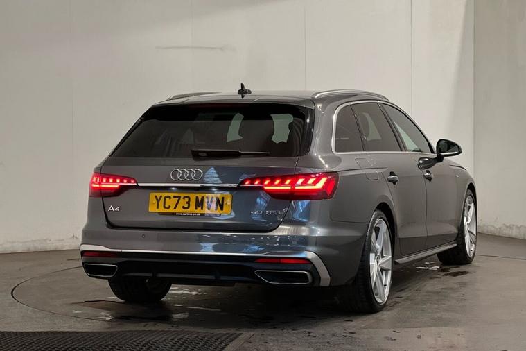 This 2023 Audi A4 Avant TFSI S line boasts a pristine provenance, having been owned by just one careful keeper and benefiting from an MOT valid until October 2026, with a clear vehicle history check. This stylish estate car features a responsive 2.0 litre petrol engine, meeting Euro 6 emission standards. Inside, youll find comfort and convenience with heated front seats, while the Parking System Plus, complete with front and rear sensors and a rear view camera, makes manoeuvring effortless. Stay connected and entertained with the Audi Smartphone Interface, offering seamless integration for both Android Auto and Apple CarPlay, all illuminated by striking LED headlights and dynamic rear indicators. Experience the dynamic performance of this A4 Avant, capable of accelerating from 0 to 60mph in a swift 7.3 seconds, a testament to its refined engineering. This impressive acceleration, combined with the comprehensive S line trim and the array of advanced features, positions this Audi A4 Avant as a superior choice for those seeking a blend of performance, technology, and practicality in a premium estate car.