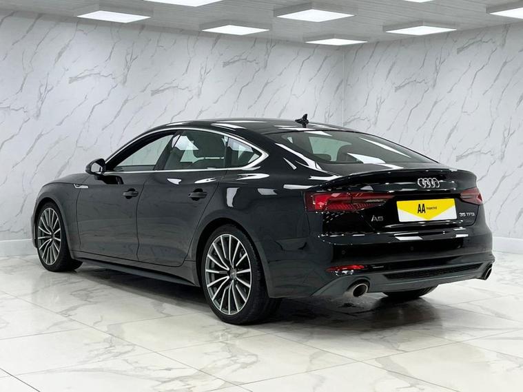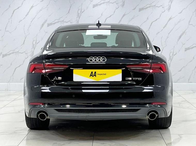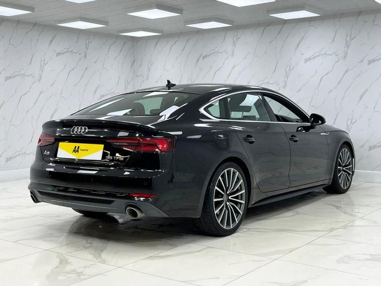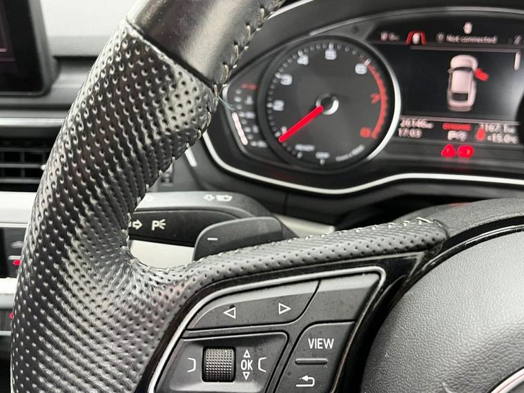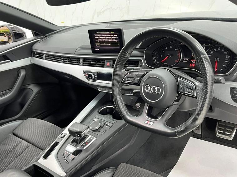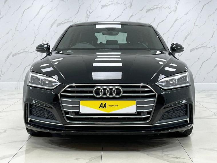 This 2019 Audi A5 TFSI S line presents an exceptional opportunity with its remarkably low mileage of just 26, 000 miles. The A5 S line is further enhanced by desirable features such as 19 inch multi spoke alloy wheels in a contrasting grey with a partly polished finish, and a flat bottomed 3 spoke leather steering wheel for a sporty feel. Experience the refined performance of this Audi A5, capable of accelerating from 0 to 60mph in 9.1 seconds. The convenience of Bluetooth connectivity is included, alongside a light and rain sensor that automatically activates the headlights. For added comfort, this model features heated front seats, making it a superior choice for those seeking a well equipped and meticulously maintained premium vehicle.