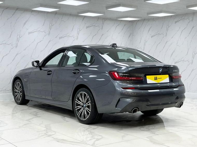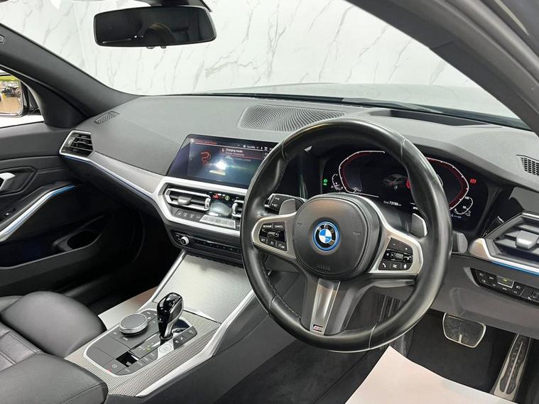 This 2022 BMW 3 Series 330e M Sport boasts a full service history and has had only one owner, offering excellent provenance. This Euro 6 compliant plug in hybrid features a 2.0L petrol engine and comes with a 36 month warranty, ensuring peace of mind. Its MOT is valid until June 2026. The M Sport trim enhances its sporty appeal, and it is equipped with a Technology Package including a Head Up Display, Rain Sensor with Automatic Headlight Activation, and BMW Connected Package Professional with Apple CarPlay. Adaptive LED headlights and Bluetooth Hands Free with USB Audio Interface are also included. Experience impressive performance with this 330e M Sport, capable of accelerating from 0 to 60mph in just 5.8 seconds. This swift acceleration, combined with its plug in hybrid technology, sets it apart from many other vehicles in its class, offering a blend of efficiency and dynamic driving. The inclusion of features like the Head Up Display and Adaptive LED headlights further enhances the driving experience, providing advanced functionality and improved visibility for a superior journey.