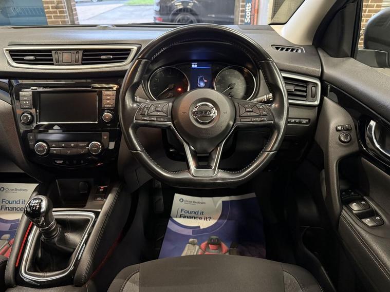 Scotts of Leeds used Car Sales are pleased to offer this NISSAN QASHQAI 1.3 DIG-T Acenta Premium SUV 5 Door Petrol Manual in Black. The car is in good condition throughout, in the best colour combination and a great specification including Satellite Navigation, Cruise control, Speed limiter, DAB radio, CD player, apple carplay, Bluetooth, USB point, reverse camera, Front and Rear parking sensors, automatic lights and wipers, alloy wheels, isofix, Electric windows, Keyless entry, Pushbutton start, and much much more. 1 Former Keeper supplied with an up to date service record having just been serviced in our Workshop, an MOT until October 2026 and 2 Keys ready to drive away. 3 MONTH NATIONWIDE WARRANTY provided with all vehicles. NATIONWIDE DELIVERY also available. A guaranteed 12 Months MOT can be added for an extra £100. DISCLAIMER: The above specification is true and correct. Any other specification listed elsewhere can sometimes be incorrect. Please check with Sales Executive to clarify this if needed prior to purchase.