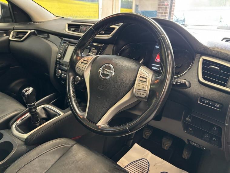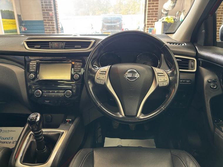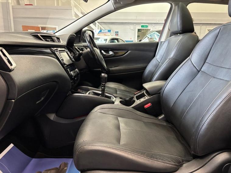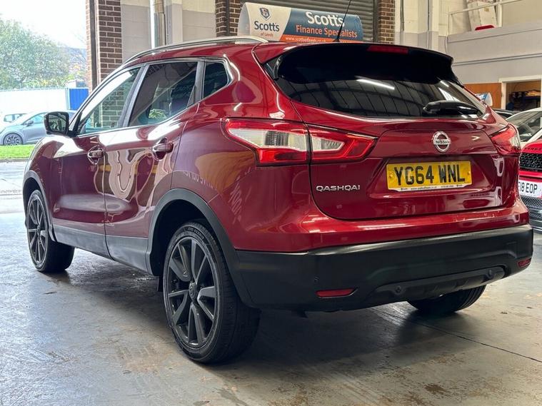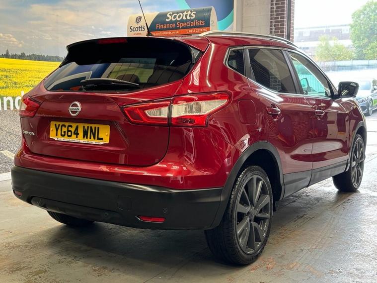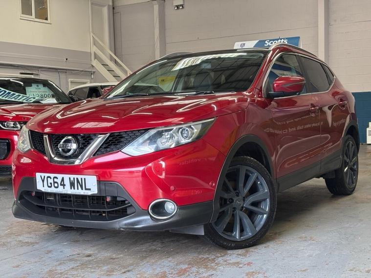 Scotts of Leeds used Car Sales are pleased to offer this NISSAN QASHQAI 1.6 dCi Tekna SUV 5dr Diesel Manual FOUE WHEEL DRIVE 4WD In red. The car is in good condition throughout, in the A lovely colour combination and a great specification including Satellite navigation, Bluetooth connectivity, Dab radio, reverse camera, front & rear park sensors, cruise control, heated seats, black leather upholstery, electric folding mirrors, auto lights & wipers, isofix, on board computer, alloy wheels and much much more. The car will be supplied with an up to date service record having just been serviced and new Turbo fitted in our Workshop, an MOT until October 2026 and 2 Keys ready to drive away. 3 MONTH NATIONWIDE WARRANTY provided with all vehicles. NATIONWIDE DELIVERY also available. A guaranteed 12 Months MOT can be added for an extra £100. DISCLAIMER: The above specification is true and correct. Any other specification listed elsewhere can sometimes be incorrect. Please check with Sales Executive to clarify this if needed prior to purchase.