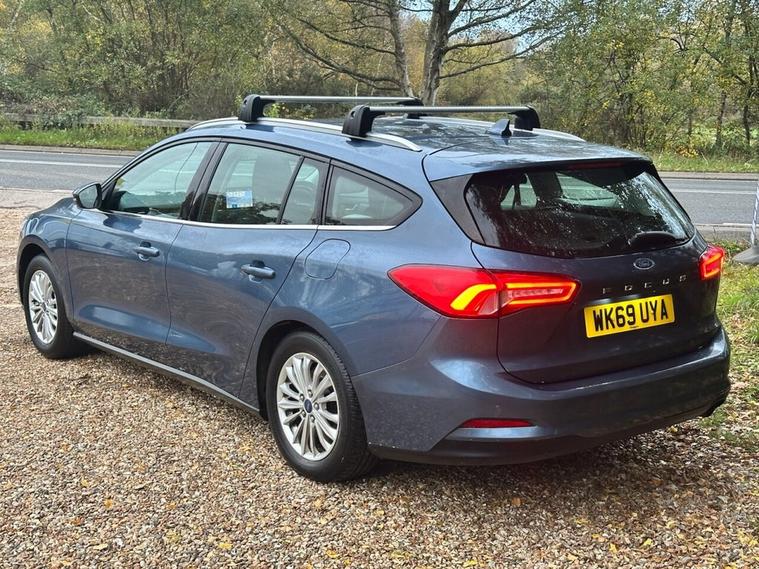 Here we have a Ford Focus Titanium estate finished in blue Equipped with Apple car play, android auto, climate Control, cruise control, heated seats & more Call us today to arrange a test drive