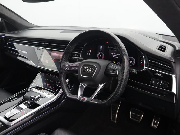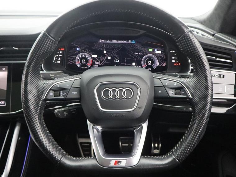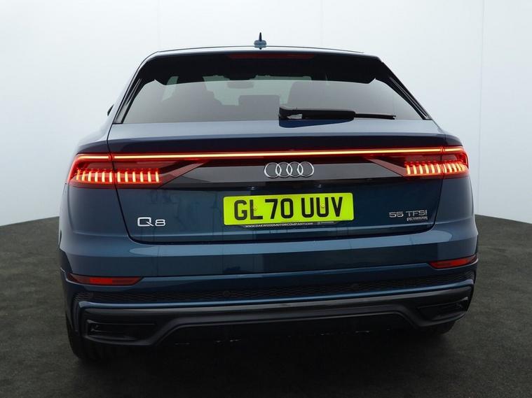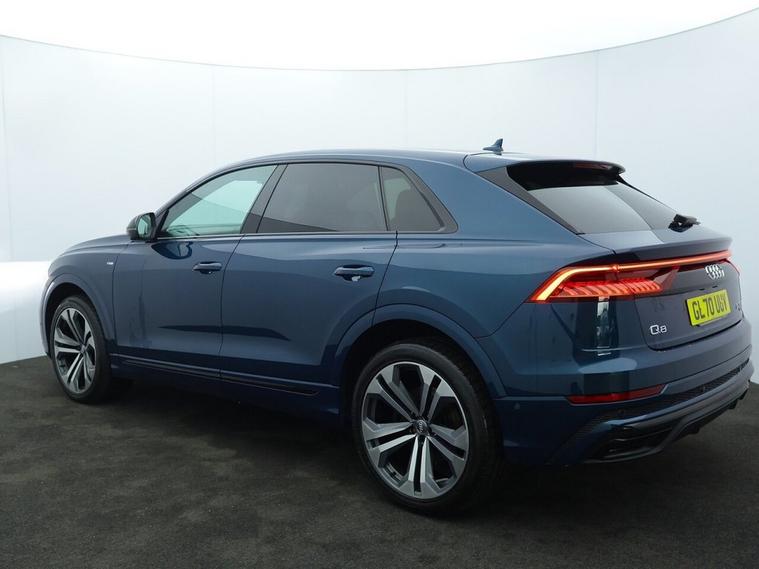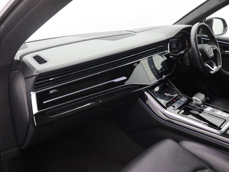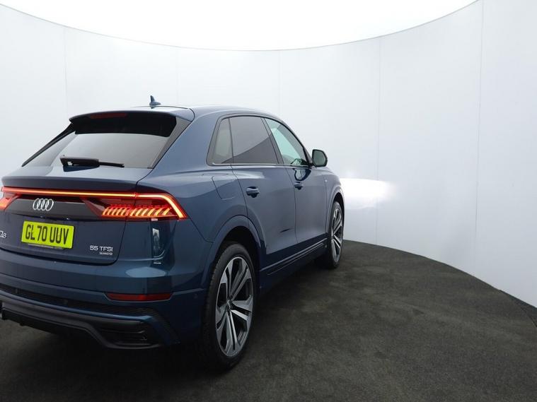 This 2020 Audi Q8 TFSI V6 Vorsprung boasts a long MOT, offering peace of mind for the coming years. This impressive four wheel drive model is equipped with a powerful 3.0 litre petrol engine, meeting Euro 6 emission standards. The Vorsprung trim level ensures a premium experience, complemented by a host of notable features. These include a heated 3 spoke leather sports steering wheel with shift paddles, and Parking System Plus with front and rear sensors, along with a rear view camera to aid manoeuvring. For enhanced driving comfort, the Tour Pack provides adaptive cruise control, and the panoramic glass sunroof brings an airy feel to the cabin. The Audi Q8 TFSI V6 Vorsprung delivers exhilarating performance, accelerating from 0 to 60mph in just 5.9 seconds, demonstrating its dynamic capabilities. Its substantial towing weight of 2800 kg makes it a versatile choice for various needs. The generous boot space further adds to its practicality, ensuring ample room for luggage or equipment. These highlights collectively indicate how this Audi Q8 offers a superior driving experience and greater utility compared to similar vehicles on the market.