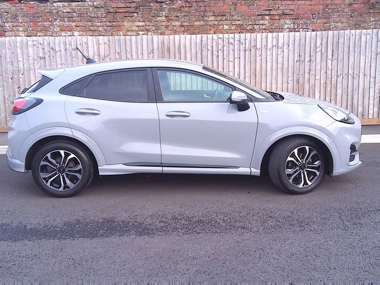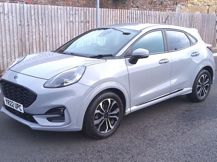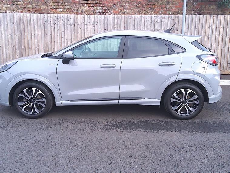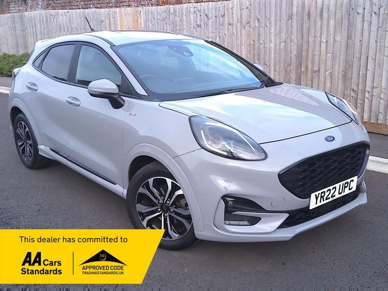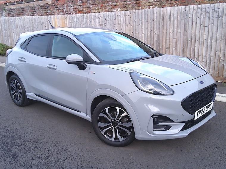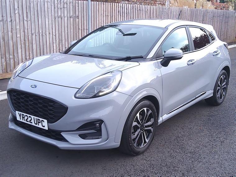 This 2022 Ford Puma ST Line is finished in Grey Matter with distinct black cloth interior with red accents and has covered 38, 600 miles and complete with full service history records. It is powered by an efficient 1.0L Petrol Hybrid engine, resposive with a 125bhp engine and meets Euro 6 emission standards. Inside, youll find the user friendly Ford SYNC 3 Navigation system, complete with Android Auto and Apple CarPlay for seamless smartphone integration, alongside Bluetooth connectivity. For added convenience, it includes rear parking sensors with parking assistance, Cruise Control and manual air conditioning to keep you comfortable on every journey. It is HPI checked clear has 2 remote locking keys and a service/handbook pack. Our advertised price includes a further service, 12 months MOT and a 6 month warranty for complete peace of mind. The Ford Puma ST Line stands out with its impressive fuel economy, achieving a highlight of 52 miles per gallon, which indicates it is more economical than many similar vehicles. Furthermore, its low CO2 emissions contribute to a more environmentally conscious driving experience. This combination of efficient hybrid technology, modern features, and excellent fuel economy makes this 2022 Ford Puma a compelling choice for those seeking a practical and enjoyable car. We are happy to take your part exchange and guarantee to offer the best price possible for your car. Thinking of car finance? We work with leading companies to source the best deal for you. With a simple, straight forward application, please ask us for a quote to see just how affordable this car could be. The car has just arrived here at the showroom and is available to view and test drive. We have flexible opening hours so please do give us a call to arrange a convenient time. We look forward to hearing from you.