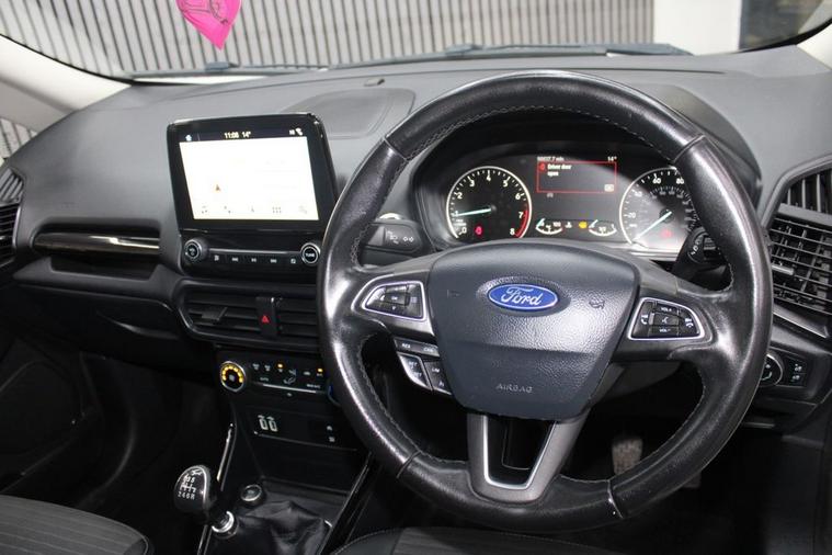 Discover this 2018 Ford EcoSport T Titanium, a well maintained example of this popular compact SUV. Powered by an efficient 1.0L petrol engine, this Euro 6 compliant model offers a compelling blend of practicality and technology. Inside, youll find the user friendly Ford Navigation System featuring Ford SYNC 3, which seamlessly integrates with both Apple CarPlay and Android Auto, keeping you connected on the go. Enjoy enhanced visibility and convenience with automatic headlights, while the rear view camera and rear parking sensors provide confidence when manoeuvring. The electronic automatic temperature control ensures a comfortable cabin environment no matter the weather. This Ford EcoSport stands out with its impressive fuel economy, achieving up to 53 miles per gallon, making it an economical choice for your daily journeys. Its low CO2 emissions further contribute to its appeal as a responsible and cost effective vehicle. These highlights demonstrate how this particular EcoSport Titanium offers a superior driving experience compared to other similar models, combining advanced features with efficient performance for everyday life in the UK.
