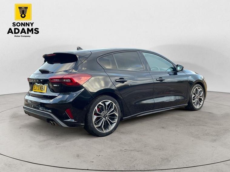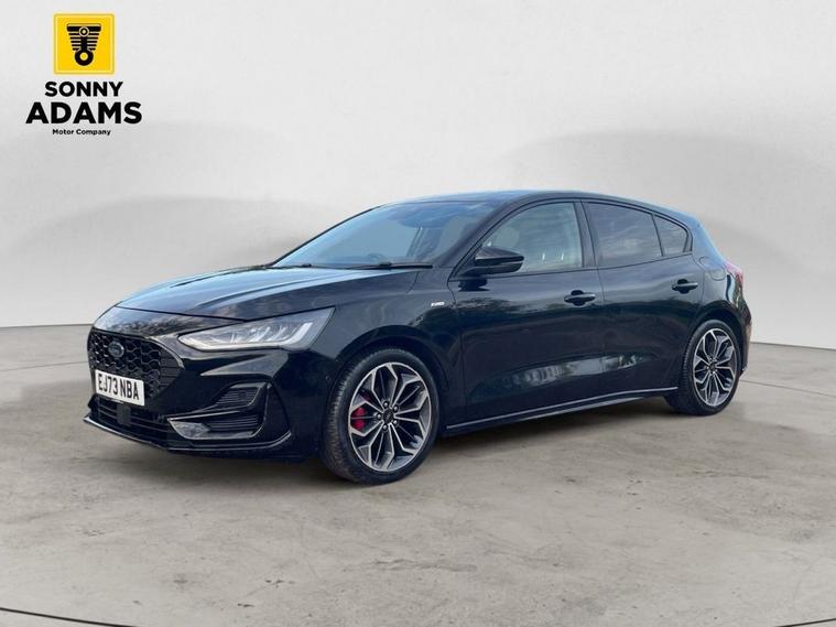 Experience sporty sophistication and hybrid efficiency with the Ford Focus 1.0T EcoBoost MHEV ST-Line X Edition, combining striking design, advanced technology, and engaging performance. Powered by a responsive 1.0-litre EcoBoost Mild Hybrid engine producing 155 PS, this Euro 6-compliant petrol hatchback delivers dynamic driving with excellent fuel economy and low emissions. Finished in Agate Black (£575), this ST-Line X Edition stands out with its unique ST-Line full bodystyling kit, large body-coloured rear spoiler, red brake calipers, and 18-inch 5x2-spoke alloy wheels in Gloss Black with a machined finish. The sporty aesthetic is complemented by LED headlights and fog lights, black upper door trims, and rear privacy glass. Step inside to discover a premium, driver-focused interior with sports-style front seats, heated front seats and steering wheel, and 6-way power adjustment for the drivers seat with electric lumbar support. The cabin features Sensico-trimmed steering wheel, soft console knee pads with red stitching, and front and rear floor mats also finished with red stitching, emphasizing the ST-Lines sporty DNA. Stay connected and in control with Ford SYNC3 DAB Navigation, FordPass Connect, dual-zone electronic automatic temperature control (DEATC), and keyless entry with keyless start. Additional convenience features include Quickclear heated windscreen, rain-sensing wipers, automatic headlights, and electrically-operated, heated, power-foldable door mirrors with puddle lights. Safety is at the forefront, with advanced systems such as Pre-Collision Assist with Autonomous Emergency Braking, Lane Keeping Aid with Lane Departure Warning, Post Collision Braking, Intelligent Speed Assistance, Hill Start Assist, Electronic Stability Control (ESC), and front and rear parking sensors. The Focus also includes Selectable Drive Modes for a tailored driving experience and sports-tuned suspension for superior handling. This vehicle benefits from a full service history, ensuring it has been meticulously maintained throughout its life. For added peace of mind, if the MOT is under six months, well ensure a fresh MOT is completed before sale. The vehicle also comes with a standard three-month back-to-base warranty, with the option to extend it to a nationwide warranty for added reassurance. Nationwide delivery is also available. Finance Available Special 9.9% APR Offer We offer in-house finance with zero deposit options and flexible monthly payments. Apply in minutes and drive away the same day! For more details or to arrange a viewing, contact 02030183551 or email enquiries dealer's website