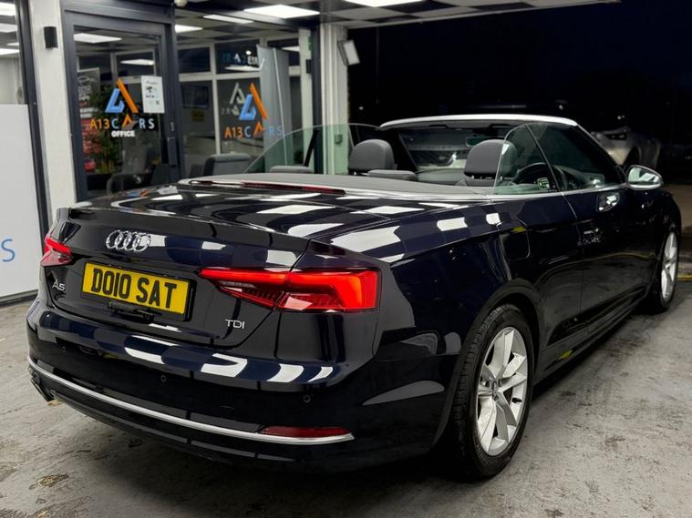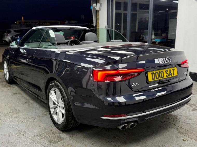 Now available: this Audi A5 Cabriolet 2.0 TDI Sport Convertible, finished in stunning blue and powered by a 190PS 2.0L diesel engine paired with a smooth S Tronic automatic transmission. The A5 Cabriolet blends dynamic performance, timeless design, and open-top luxury perfect for drivers who enjoy elegance and excitement in equal measure. With just 18, 106 miles, this Euro 6 compliant model is in excellent condition and offers refined comfort, advanced technology, and outstanding efficiency a true premium convertible ready for every season. This vehicles specification is provided by CAP HPI please confirm details with a salesperson and inspect the vehicle before purchase. Vehicle Details: Engine: 2.0L Diesel (190 PS) Transmission: Automatic (S Tronic) Drivetrain: Front Wheel Drive Fuel Type: Diesel Euro 6 (s/s compliant) Mileage: 18, 106 miles Doors: 2 Colour: Blue Trim: Sport 2x Keys Highlighted Features: Sport Trim with Elegant Detailing Full Leather Upholstery with Heated Front Seats Power Folding Soft-Top Roof Audi MMI Navigation & Infotainment System Front & Rear Parking Sensors LED Headlights with Daytime Running Lights Drive Select with Comfort & Dynamic Modes Cruise Control & Dual-Zone Climate Control Bluetooth & USB Connectivity 18 Sport Alloy Wheels Keyless Start *Finance available part exchange welcome* *HPI clear, fully inspected, and prepared to high standards* *Enquire today to arrange a viewing or reserve this luxury convertible* *Low mileage, stylish, and ready for the road available now*