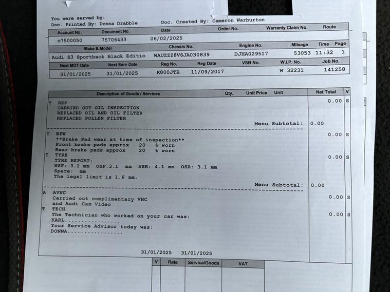 - Brake Calipers Painted in Black with S3 Logo at the Front