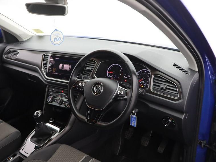 This 2019 Volkswagen T-Roc TSI SE boasts a clear vehicle history, offering you peace of mind. This stylish SUV is equipped with a 1.0 litre Euro 6 compliant petrol engine, ensuring it meets modern emission standards. Inside, youll find a wealth of technology including Adaptive Cruise Control for effortless journeys, and Car-Net App-Connect which seamlessly integrates your Android Auto or Apple CarPlay. The SE trim also features Halogen Clear Headlights with LED Daytime Running Lights, automatically activated by a Dusk Sensor, and the Composition Media System with Bluetooth connectivity. The Volkswagen T-Roc TSI SE is designed to be economical and accessible. It achieves an impressive fuel economy of 50 miles per gallon, which is a significant advantage over many other vehicles. Furthermore, its low insurance group rating means that running costs are kept to a minimum. The vehicle also benefits from low CO2 emissions, indicating its environmental efficiency. These highlights collectively demonstrate how this T-Roc offers a more cost effective and considerate driving experience compared to similar models on the market.