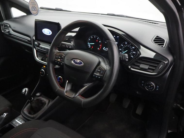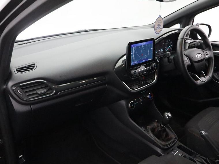 This 2022 Ford Fiesta ST-Line Edition is a superb example, having had only one owner since new. This popular hatchback boasts a responsive 1.0L petrol engine and meets Euro 6 emissions standards. Inside, youll find manual air conditioning for your comfort, alongside a Ford Navigation System featuring Ford SYNC 3, which seamlessly integrates with both Apple CarPlay and Android Auto. The car also comes equipped with FordPass Connect, an embedded modem for enhanced connectivity. For improved visibility and safety, it features LED projector headlights with daytime running lights and automatic headlights. Manoeuvring is made easier with rear parking distance sensors, and the NCAP Pack further enhances safety. The performance and efficiency of this Fiesta are notable. It achieves an impressive 0-60mph in just 9.4 seconds, demonstrating its spirited acceleration. Furthermore, its fuel economy is a highlight, reaching up to 58 miles per gallon, which indicates it is more economical than many similar vehicles. This Fiesta also benefits from low CO2 emissions, suggesting it is a more environmentally conscious choice compared to other cars in its class.