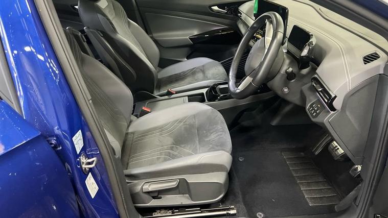 **97.4% BATTERY HEALTH** PANORAMIC ROOF ** This 2022 Volkswagen ID.5 Pro Style is a remarkable example, having been cherished by just one owner from new and boasting exceptionally low mileage for its age, having covered only 21670 miles. As a fully electric vehicle, it offers a smooth and quiet driving experience, powered by an 82 kWh battery that provided an impressive maximum range of 326 miles when new. This particular model, the Style trim, combines advanced electric technology with practical everyday usability, making it an excellent choice for those seeking an environmentally conscious and modern vehicle. The ID.5 Pro Style is designed for convenience and efficiency. Recharging at home using a 7kW charger will take approximately 12 hours and 40 minutes for a full charge, ensuring you can start each day with a full battery. For longer journeys, the fastest public charging option can replenish the battery from empty to 80% in just 30 minutes, a significant advantage for electric vehicle owners. The highlighted maximum range of 326 miles at new demonstrates its capability for both daily commutes and longer trips, setting it apart from many other electric vehicles on the market.