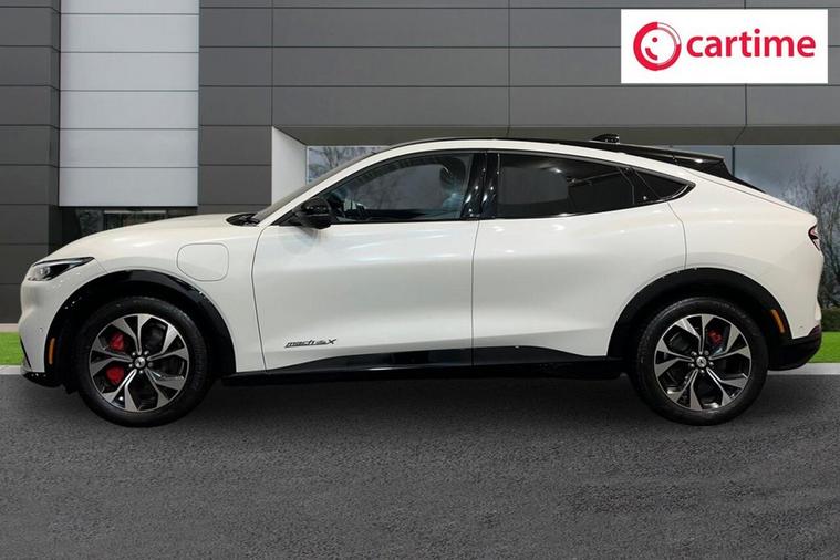 With only one owner and a remarkably low mileage of 19308 miles for its 2022 registration, this Ford Mustang Mach-E Extended Range presents an exceptional opportunity. This electric vehicle boasts a substantial 99 kWh battery, offering a new vehicle maximum range of 335 miles, and features a capable Four Wheel Drive drivetrain. Its MOT is valid until July 2026, providing peace of mind. Notable features include Adaptive Cruise Control with Stop and Go and Lane Centering, BLIS Blind Spot Information System with Cross Traffic Alert, and the Tech Pack Plus which encompasses a Panoramic Sunroof, 360 Degree Camera Parking Assistance, and a Premium Branded Sound System. The vehicle is also equipped with Adaptive LED Mustang Signature Headlamps and the Next Generation SYNC system with Connected Navigation and Natural Voice Search. The performance of this Mustang Mach-E is truly impressive, with an acceleration of 0-60mph in just 5.8 seconds, indicating a more dynamic driving experience compared to many other electric vehicles. For convenience, a full charge at home using a 7kW charger takes approximately 14 hours and 36 minutes, while rapid public charging can replenish the battery from empty to 80% in as little as 51 minutes. These charging times highlight the practicality of this electric SUV for both daily commutes and longer journeys.