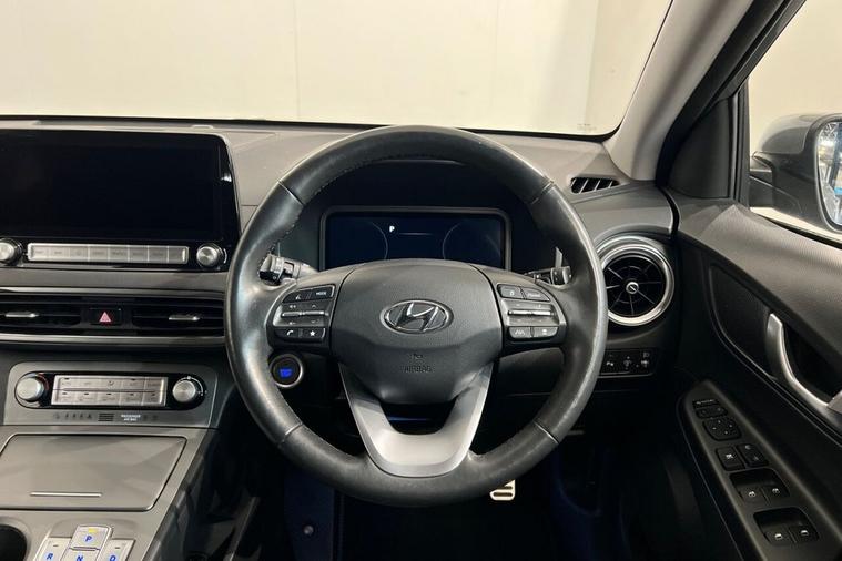 This 2021 Hyundai KONA Premium Electric boasts an MOT valid until September 2026, offering excellent peace of mind. This single owner vehicle features a substantial 68 kWh battery, providing a maximum range of 300 miles when new. For convenience, a full charge at home using a 7kW charger takes approximately 10 hours and 16 minutes, while rapid public charging can replenish the battery from empty to 80% in just 53 minutes. The KONA Premium is equipped with a suite of helpful features designed to enhance your driving experience. These include a rear camera and guidance system, front and rear parking sensors, and Bluetooth connectivity with voice recognition. Stay connected and entertained with Android Auto, and enjoy a comfortable cabin thanks to climate control with an automatic de fog system for the front windscreen. These features collectively demonstrate how this Hyundai KONA offers a superior and more convenient driving experience compared to other vehicles in its class.