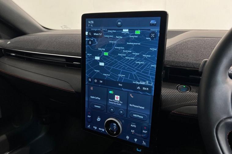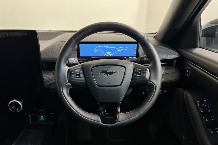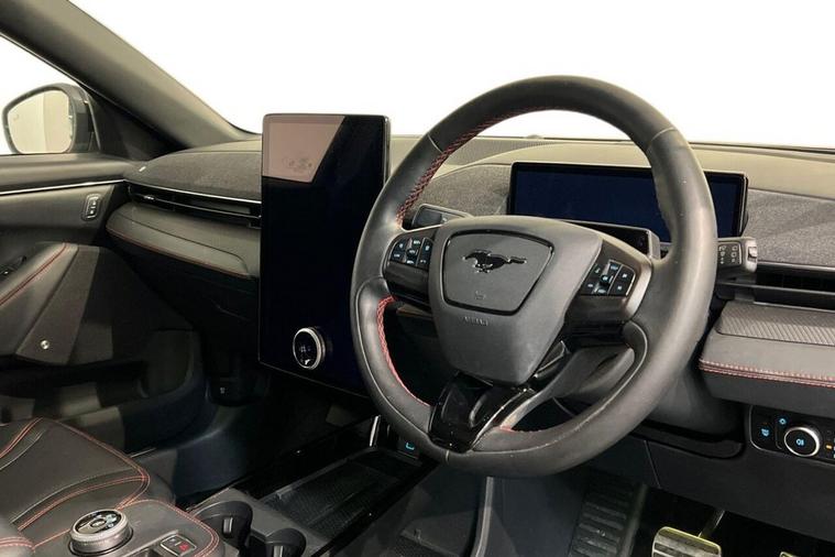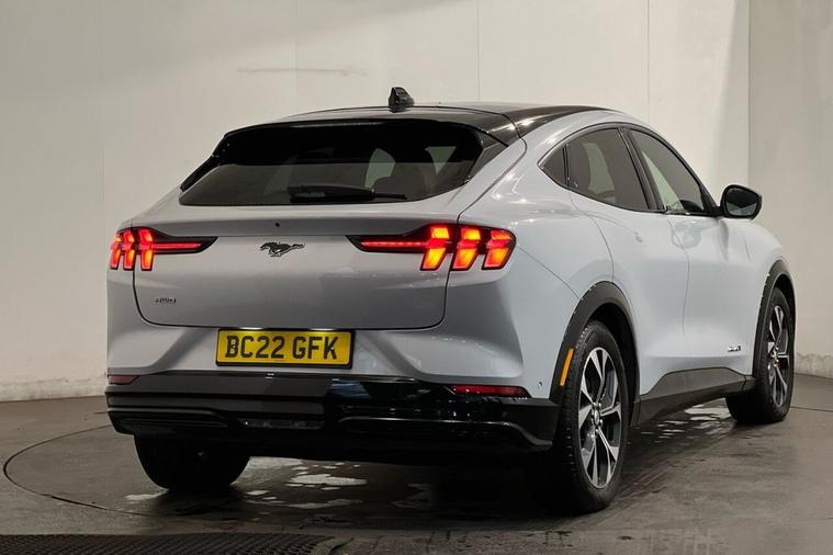 This 2022 Ford Mustang Mach-E Extended Range boasts a single owner from new, offering a pristine example of electric driving. This four wheel drive model features a substantial 99 kWh battery, providing an impressive maximum range of 335 miles when new. For convenience, a full charge at home using a 7kW charger takes approximately 14 hours and 36 minutes, while rapid public charging can take the battery from empty to 80% in just 51 minutes. The vehicles MOT is valid until March 2026, ensuring peace of mind. Notable features include a 360 degree camera with parking assistance, dual zone electronic automatic climate control, Blind Spot Information System with Cross Traffic Alert, E-Latch keyless entry with keypad access, and adaptive cruise control with stop and go and lane centering. The Mustang Mach-E Extended Range truly excels in its performance and capability. Its electric powertrain delivers exhilarating acceleration, achieving 0 to 60 miles per hour in a swift 5.8 seconds, a figure that highlights its dynamic performance compared to many other vehicles in its class. The substantial 335 mile maximum range further sets it apart, offering drivers the freedom to travel further on a single charge. This combination of rapid acceleration and extensive range makes this 2022 Ford Mustang Mach-E a compelling choice for those seeking an advanced and capable electric vehicle.