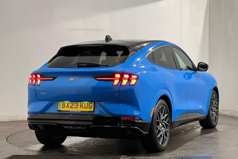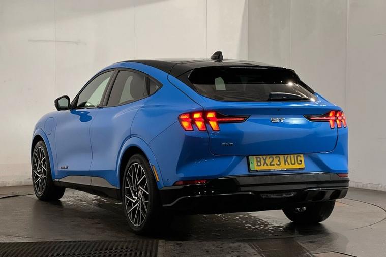 This 2023 Ford Mustang Mach-E GT Extended Range boasts exceptionally low mileage for its age, having covered just 15, 886 miles. This electric vehicle, presented in GT trim, features a Four Wheel Drive drivetrain and a substantial 99 kWh battery, offering a maximum range of 304 miles when new. For your convenience, it includes front and rear parking sensors with parking assistance, a wireless device charging pad, and adaptive cruise control as part of its Active Drive Assist system. The Ford Sync 4A infotainment system, complete with a 15.5 inch touchscreen, seamlessly integrates Android Auto and Apple CarPlay, further enhanced by a rear view camera for effortless parking. Experience exhilarating performance with the Mustang Mach-E GTs impressive acceleration, achieving 0-60mph in a mere 3.6 seconds, a figure that highlights its superior capability compared to many other vehicles in its class. Charging is straightforward, with a full charge at home taking approximately 14 hours and 36 minutes using a 7kW charger, while rapid public charging can replenish the battery from empty to 80% in as little as 51 minutes. These charging times demonstrate the practicality and efficiency of this advanced electric SUV, making it a compelling choice for those seeking both performance and everyday usability.