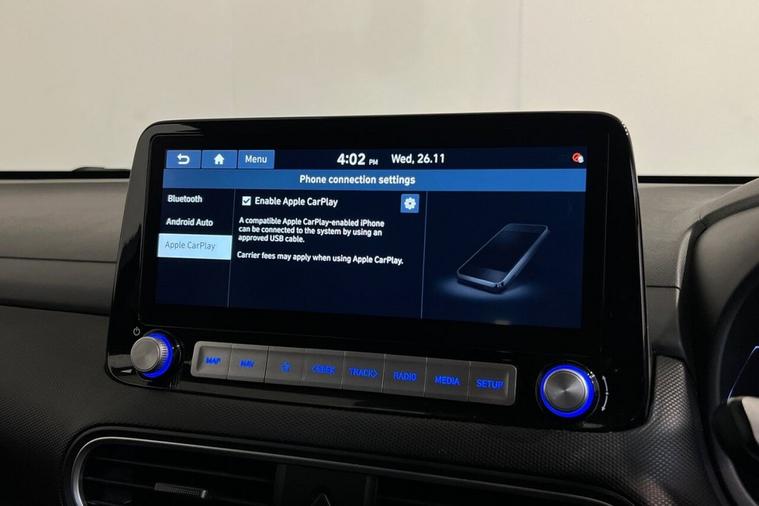 This 2020 Hyundai KONA Premium SE electric vehicle offers exceptional value with its low mileage of just 35, 435 miles and an MOT valid until September 2026. As an electric model, it boasts a substantial 68 kWh battery, providing a maximum range of 279 miles when new. This Premium SE trim level comes equipped with a host of convenient features, including Android Auto for seamless phone connectivity, a wireless phone charging pad, and keyless entry with an engine start-stop button. Youll also appreciate the added comfort of heated outer rear seats and Bluetooth connectivity with voice recognition. The charging capabilities of this KONA are designed for modern convenience. A full charge at home using a 7kW charger takes approximately 9 hours and 35 minutes, ideal for overnight top ups. For quicker charging on the go, it can reach 80% capacity from empty in just 53 minutes at a public charging station. These charging times, combined with its impressive range and the comprehensive feature set, highlight how this Hyundai KONA Premium SE stands out as a practical and well equipped electric car for everyday use.