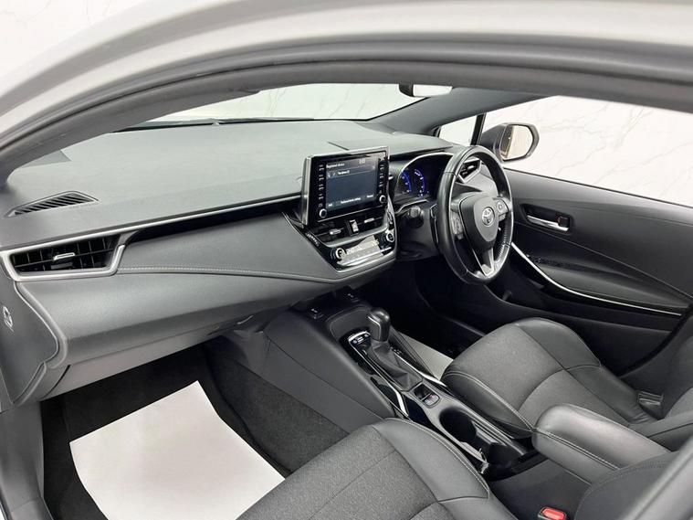 This 2020 Toyota Corolla VVT-h Design is a superb example, boasting a full dealership service history and having had only one owner from new. This Euro 6 compliant model features a responsive 2.0L petrol hybrid engine, paired with a Design trim level and 17in black machined alloy wheels. Experience effortless driving with features like front and rear parking sensors, a reversing camera, and adaptive cruise control with speed limiter. The automatic headlights ensure optimal visibility, while the impressive 0-60mph acceleration in just 7.8 seconds demonstrates its dynamic performance. This Corolla also benefits from a low insurance group, making it a cost effective choice compared to similar vehicles.