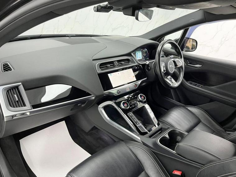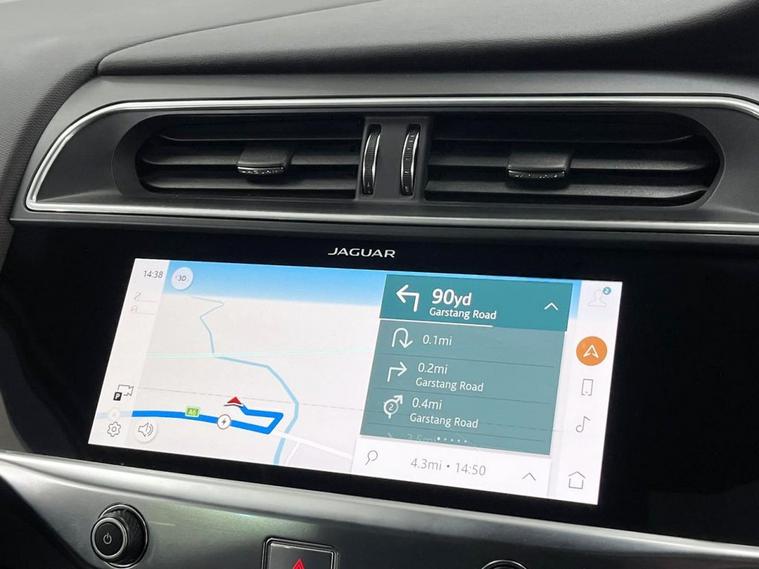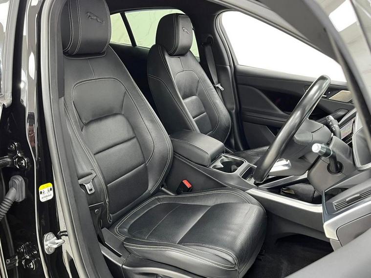 This 2022 Jaguar I-PACE 400 Black is a superb example, having had only one owner since new. This striking electric vehicle boasts a Four Wheel Drive drivetrain and a substantial 90 kWh battery, offering a maximum range of 278 miles when new. Inside, youll find a Light Oyster Morzine Headlining, Bluetooth connectivity, and Wireless Device Charging. The Premium LED Headlights with Signature DRL ensure excellent visibility, while the Fixed Panoramic Roof adds a sense of spaciousness to the cabin. Experience exhilarating performance with the Jaguar I-PACE 400 Black, which accelerates from 0-60mph in a remarkable 4.5 seconds, demonstrating its superior capability compared to many other vehicles. Charging is convenient, with a full charge at home taking approximately 12 hours and 36 minutes using a 7kW charger, and a rapid charge from empty to 80% achievable in just 50 minutes at a public charging station. This combination of impressive range, rapid charging, and dynamic performance makes this electric Jaguar a truly compelling choice.