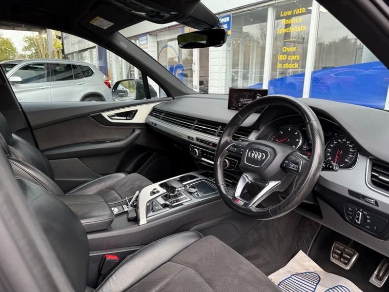 This 2016 Audi Q7 3.0 TDI V6 S Line comes with 2 keys, a minimum of 8 months MOT & Full Audi Service History. With only two owners and a low mileage of 81, 000 miles for its 2017 registration, this Audi Q7 TDI V6 S line presents a compelling proposition. This Euro 6 compliant model boasts a powerful 3.0L Diesel engine paired with Four Wheel Drive, ensuring confident performance in all conditions. Its S line trim signifies a sporty and sophisticated aesthetic, and this vehicle will come with 12 months MOT offering peace of mind. Notable features include Deluxe Four-Zone Automatic Climate Control for personalised comfort, Factory Spec Side Steps, Heated Front Seats for those colder journeys, and All Weather LED Headlights for enhanced visibility. The convenience of a Bluetooth Interface and a Light and Rain Sensor further enhance the driving experience. This Audi Q7 stands out with its impressive acceleration, reaching 0-60mph in just 7.3 seconds, a testament to its dynamic capabilities. Furthermore, its low insurance group rating indicates that running costs are likely to be more economical compared to similar vehicles. The substantial towing weight of 2800 kg makes it a highly versatile option for those needing to tow caravans, trailers, or boats. This combination of performance, practicality, and thoughtful features makes this Q7 a well rounded choice for discerning drivers.