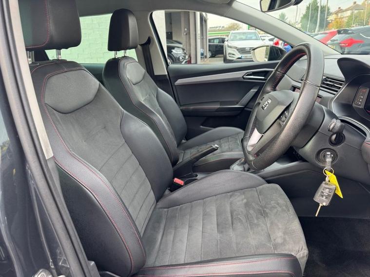 SEAT IBIZA 1.0 TSI FR SPORT Petrol in Magnetic Grey paintwork with 18 Performance Alloys. Only 2 owners from new, very low mileage and full SEAT service history. 12 months MOT included. Excellent fuel economy and CAZ/ULEZ compliant air zones. Spec includes sat nav, car play / android auto, cruise control, multi-function steering, auto headlights, Bluetooth, electric mirrors/windows, air con, power folding wing mirrors, trip computer and much more. Call 01138032273 or visit dealer's website