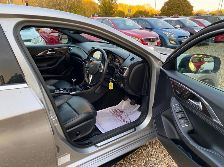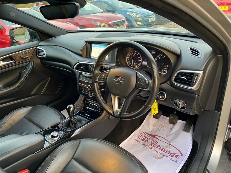 LONG MOT UNTIL 12.10.2026+TOUCHSCREEN INFORTAINMENT SYSTEM FEATURES SATELLITE NAVIGATION+BLUETOOTH+LANE DEPARTURE WARNING+DUAL ZONE CLIMATE CONTROL AIR-CONDITIONING+AUTOMATIC HEADLIGHT ACTIVATION+RAIN-SENSING WINDSCREEN WIPERS+HEATED LEATHER UPHOLSTERY+FRONT & REAR PARKING ASSISTANCE WITH PARKING CAMERA+PANORAMIC GLASS ROOF+METALLIC BLADE SILVER PAINT+18 INCH ALLOY WHEELS. At Haverhill Car Xchange we would like to offer you our Infiniti Q30 Premium Tech Hatchback which has been finished in a metallic Blade Silver paint with luxurious Graphite Nappa Leather upholstery. Excellent Specification Includes a Touchscreen Infotainment System which features Satellite Navigation System, Radio-CD Player, Bluetooth Audio Streaming with Phone Book Functionality, Voice Recognition System, X2 USB Ports with Smart Phone and iPod Connectivity, Lane Departure Warning, Automatic Dual Zone Climate Control Air-Conditioning, Cruise Control, Front and Rear Electric Windows with One-Touch Up/Down, Body Coloured Bumpers/Door Handles, Door Mirrors with Integrated Side Indicators/Puddle Lights and Rear Roof Spoiler, Automatic Headlight Activation, LED Daytime Running Lights, Auto Smart Beam High-Low, LED Front Fog Lights, Rain-Sensing Windscreen Wipers, Heated Front Seats, Front and Rear Parking Assistance with Parking Camera, Multifunction Steering Wheel, Panoramic Glass Roof, Electronic Parking Break, 18 Inch Alloy Wheels, Heated Windscreen, Speed Sensitive Power Assisted Steering, Hill Start Assist, Forward Collison Warning and Stop, Airbags, Alarm, Keyless Entry System and Engine Start-Stop Button, Immobiliser and ISOFIX Anchorage Points for Child Seats.