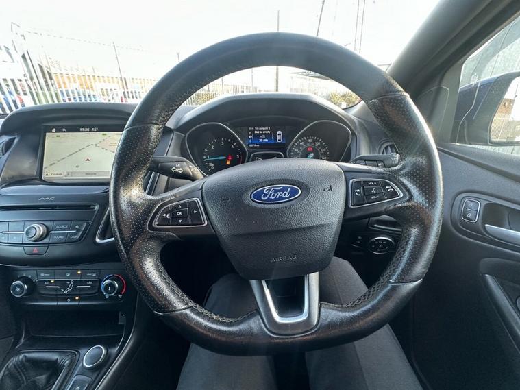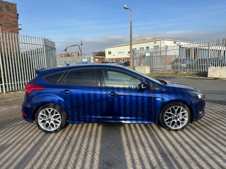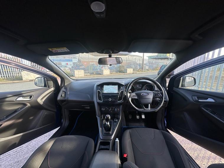 March 2017 Ford Focus 1.5 TDCI ST-Line TDCI 120PS Start/Stop EURO 6 ULEZ/CAZ clean Air Zone Compliant. The car has covered 108, 700 miles from new with 5 owners from new. The car has been regularly serviced and maintained to a high standard, There are 4 services recorded including ours done for the sale. The car costs just £20 for 12 months Road Tax, Insurance Group 16, The car returns 67mpg urban, 83mpg extra-urban and 74mpg combined so the car is very economical and costs little to run and insure! This model is the ST-Line so the car has a full body kit and 18 alloy wheels, This makes the car look outstanding and the paintwork is finished in gleaming Deep Impact Blue, and the rear windows have protective privacy film factory fitted so the cars exterior is very pleasing! Inside the car benefits with ST Line sports cloth seats with race red stitching, multi function steering wheel with flat bottom, HDD Satellite Navigation, ISOFIX car seat anchorage points, 5 seater, air conditioning, AUX, USB, Auto Lights, Privacy Glass, 18 Alloy Wheels, On Board Computer, Ford Sync Radio CD Head Unit MP3 DAB, 6 Speed Manual Transmission, Start Stop, Rear Wiper, Electric Windows, Electric Mirrors, Remote Central Locking, Multiple Airbags. This is a gorgeous high specification Economical Family Hatchback That Really Stands Out From The Crowd And Saves You a few quid in the long run with its MPG LOW INSURANCE AND LOW ROAD TAX!