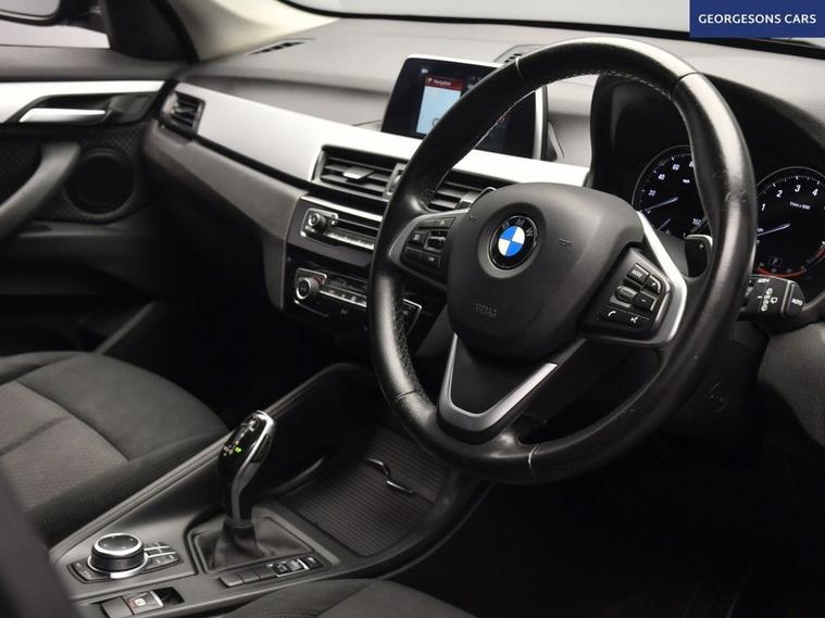 The BMW X1 2.0 20i SE combines a responsive 2.0-litre turbo petrol engine with 192hp, delivering 0-62mph in 7.7 seconds and up to 42.8mpg in this front-wheel-drive setup with a smooth 7-speed DCT automatic transmission. Navigate effortlessly with integrated satellite navigation, Bluetooth, and DAB radio, ensuring seamless connectivity on every journey. Parking is a breeze thanks to the parking sensors, providing confidence in tight spaces. Stay comfortable with dual-zone climate control, offering personalized cooling year-round. Cruise control with speed limiter enhances relaxation on highways. Paddle shift gears and selectable drive modes provide precise control and tailored performance, whether for efficiency or dynamic driving. The spacious five-door SUV design includes a 505-litre boot for practicality. C