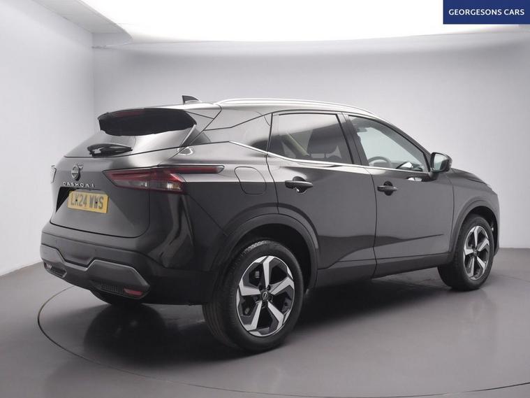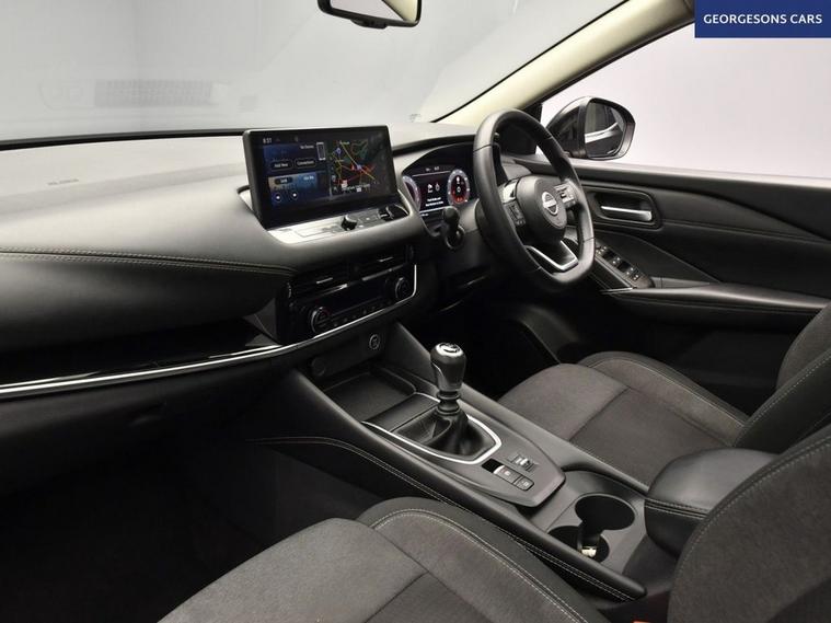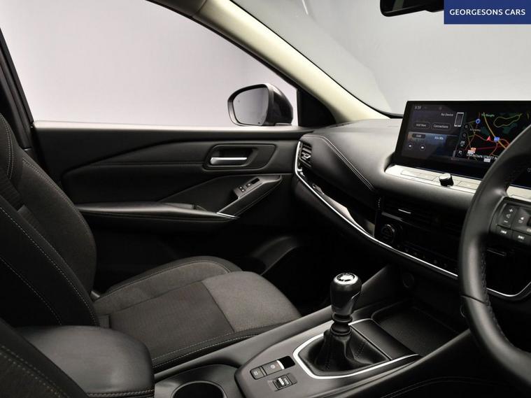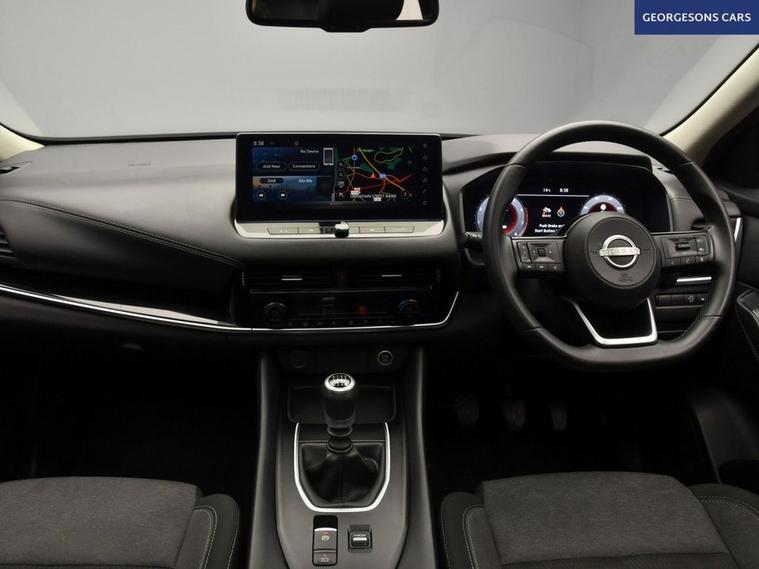 The Nissan Qashqai 1.3 DIG-T MHEV N-Connecta combines a responsive 1.3-litre turbo petrol mild-hybrid engine with 158hp, delivering 0-62mph in 9.6 seconds and up to 48.7mpg in this front-wheel-drive setup with a precise 6-speed manual transmission. The N-Connecta trim offers stylish versatility with 18-inch alloy wheels and a spacious interior for versatile family SUV motoring. With one owner and three services, this Qashqai is in excellent condition. Enjoy the panoramic roof for an airy cabin feel, while integrated satellite navigation, Apple CarPlay, Bluetooth, and DAB radio ensure seamless connectivity on every journey. Parking is a breeze thanks to the 360-degree camera and parking sensors, providing comprehensive visibility and confidence in tight spaces. Stay comfortable with dual-zone climate control, offering personalized cooling year-round. Adaptive cruise control with speed limiter and lane assist enhance safety and relaxation on highways, while hill assist ensures smooth starts on inclines. Selectable drive modes provide tailored performance, whether for efficiency or dynamic driving, and the push-button start adds daily convenience. The spacious five-door SUV design includes a 504-litre boot for practicality.