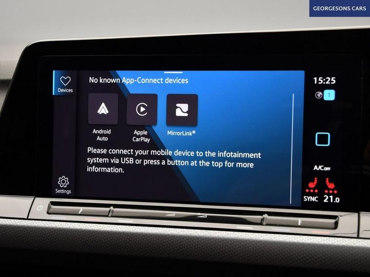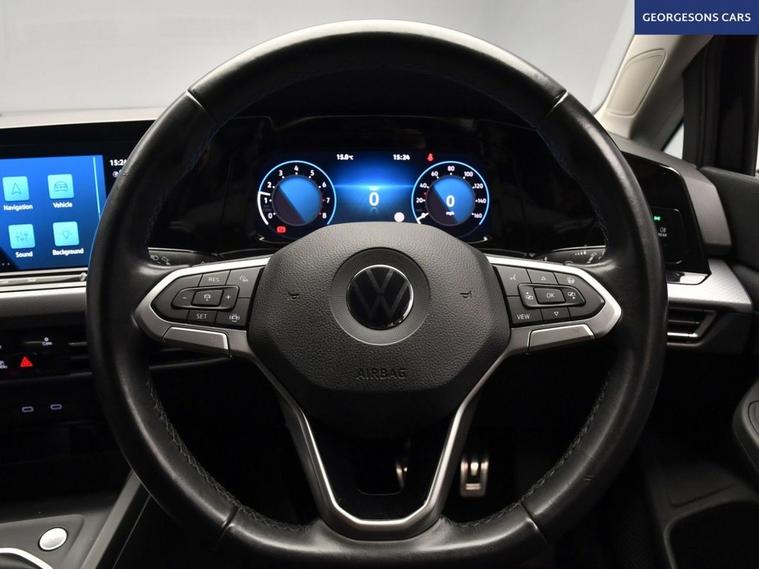 The Volkswagen Golf 1.5 TSI Active combines a lively 1.5-litre turbo petrol engine with 150hp, delivering 0-62mph in 8.5 seconds and up to 52.3mpg in this front-wheel-drive setup with a precise 6-speed manual gearbox. The luxurious Active trim brings 17-inch alloys, premium styling and top-tier comfort. With one owner and six services, this Golf is in superb condition. Enjoy heated front seats and heated steering wheel, while integrated satellite navigation, Apple CarPlay, Bluetooth and DAB radio keep you connected. Parking is effortless with reverse camera and parking sensors. Adaptive cruise control, lane assist, hill assist and push-button start deliver relaxed, safe motoring every day. The spacious five-door hatchback includes a 381-litre boot.