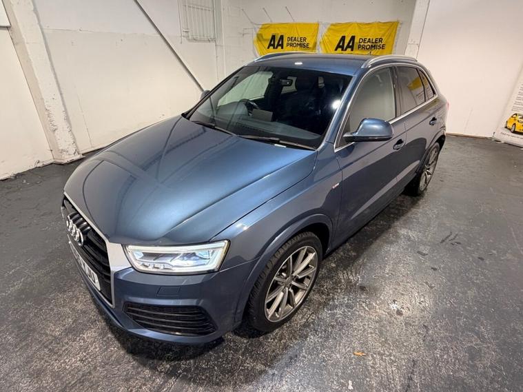 We have on offer this wonderfull specification Audi Q3 Quattro S-Line+ S-Tronic Automatic 4X4 Quattro, fininshed in Gleaming Utopia Blue Metallic with contrasting half Leather Heated Alcantara S-Line Seats it comes with Service History, Remote Locking with 2 Remote Keys, Sat Nav, DAB Radio, Power Folding Door Mirrors, Privacy Glass, Electric Power Tailgate, ULEZ Zone Compliant. #### CHECK OUT OUR AUTOTRADER REVIEWS ####