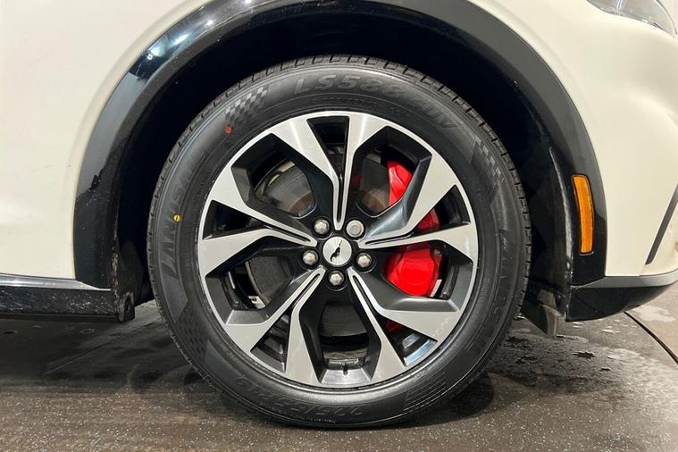 This 2022 Ford Mustang Mach-E Standard Range is a superb example, having had only one owner since new. This electric vehicle boasts a four wheel drive drivetrain and a 76 kWh battery, offering a maximum range of 248 miles when new. It features the convenient E-Latch Keyless Entry System with B-Pillar Keypad Access, alongside Adaptive LED Mustang Signature Headlamps. Inside, youll find the Next Generation SYNC system with Connected Navigation and Natural Voice Search, a Heated Steering Wheel for those colder journeys, and a 360 Degree Camera for effortless parking. Experience exhilarating performance with this Mustang Mach-E, accelerating from 0-60mph in just 5.6 seconds, a figure that demonstrates its dynamic capability. Charging is straightforward, with a full charge at home on a 7kW charger taking approximately 11 hours and 24 minutes, while rapid public charging can take the battery from empty to 80% in as little as 43 minutes. These attributes combine to make this electric Mustang Mach-E a compelling choice for those seeking a blend of performance, technology, and practicality.