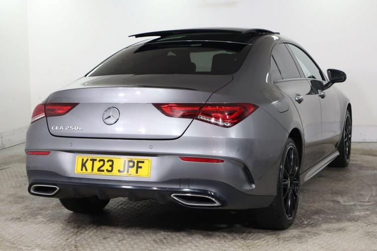 This 2023 Mercedes-Benz CLA250e AMG Line Night Edition is a superb example, having had only one owner since new. This striking vehicle boasts a 1.3L petrol plug-in hybrid engine, adhering to Euro 6 emission standards. It comes equipped with the desirable KEYLESS-GO Package for effortless entry and starting, alongside Headlamp Assist for automatic headlamp activation. The advanced MULTIBEAM LED Headlamps with Adaptive Highbeam Assist provide exceptional visibility, while dual Bluetooth interfaces offer seamless connectivity. Furthermore, the expansive Panoramic Roof allows for an open and airy cabin experience. The AMG Line Night Edition trim enhances the already sophisticated CLA, offering a sportier aesthetic. The plug-in hybrid technology signifies a more efficient and environmentally conscious driving experience compared to traditional petrol or diesel models. The inclusion of the Premium Plus package, with features like the opening panoramic roof and advanced lighting systems, further elevates this Mercedes-Benz above its peers, providing both luxury and cutting edge technology for the discerning driver.