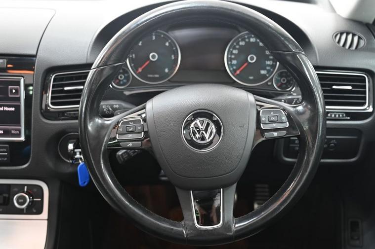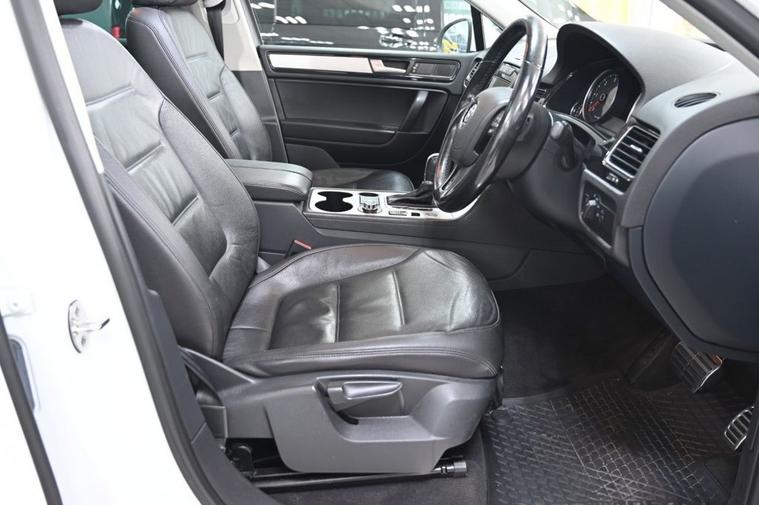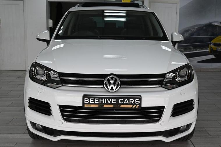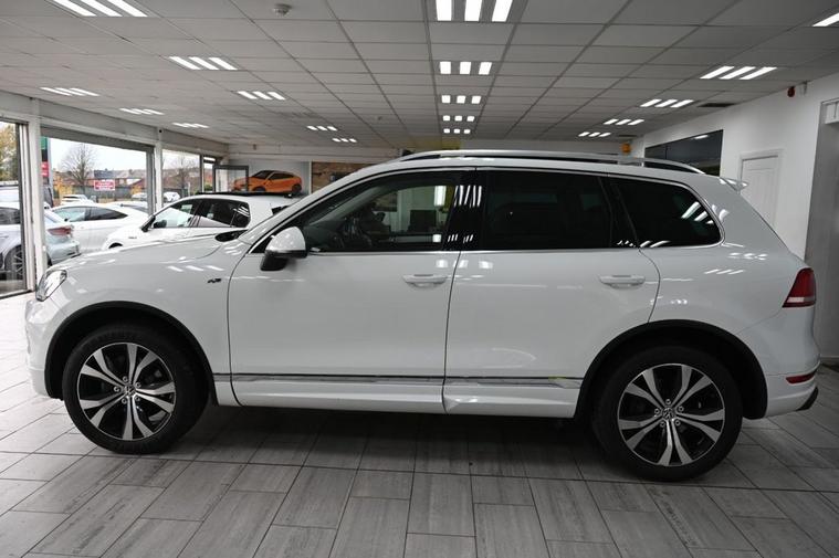 DRIVE AWAY TODAY OR FREE HOME DELIVERY TO YOUR DOORSTEP FINANCE & PART EXCHANGE ARRANGED ONLINE** 7 DAY MONEY BACK GUARANTEE** Lovely 4X4 Vw Touareg 3.0 tdi v6 bluemotion tech r-line suv in metallic white with full service history sat nav dab radio bluetooth media traffic set up panoramic glass roof full leather seats with armrest heated seats electric heated folding door mirrors front and rear parking aid sensors xenon lights f1 style paddleshifts push button start stop electric push button tailgate alloys privacy