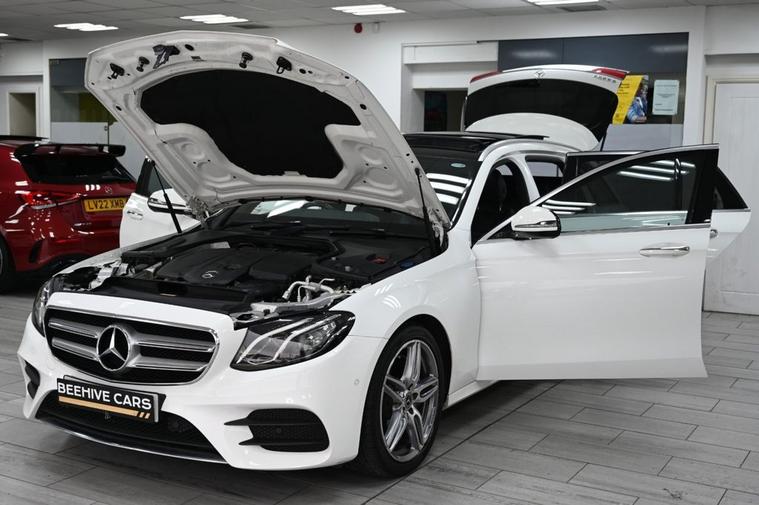 DRIVE AWAY TODAY OR FREE HOME DELIVERY TO YOUR DOORSTEP FINANCE & PART EXCHANGE ARRANGED ONLINE** 7 DAY MONEY BACK GUARANTEE** Lovely car & drive Mercedes e220d amg line premium automatic in metallic white with full mercedes service history sat nav dab radio bluetooth media usb reverse camera panoramic glass roof half leather seats with armrest heated seats electric memory seats electric folding door mirrors front and rear parking aid sensors xenon lights flat bottom steering wheel with f1 style paddelshifts eco comfort sport dynamic driving modes push button start stop alloys privacy