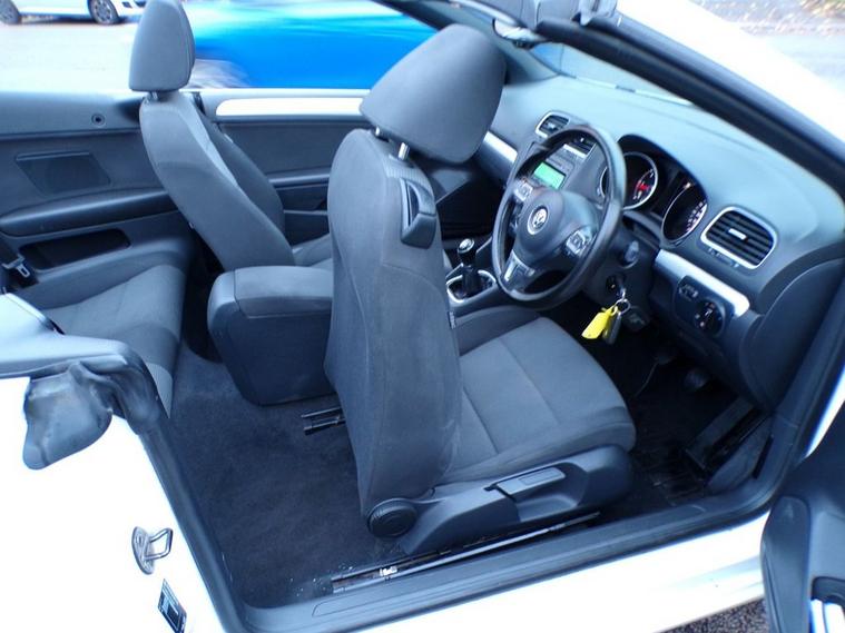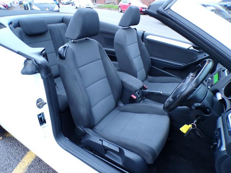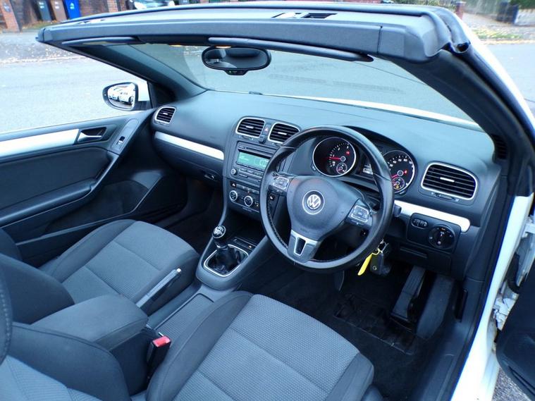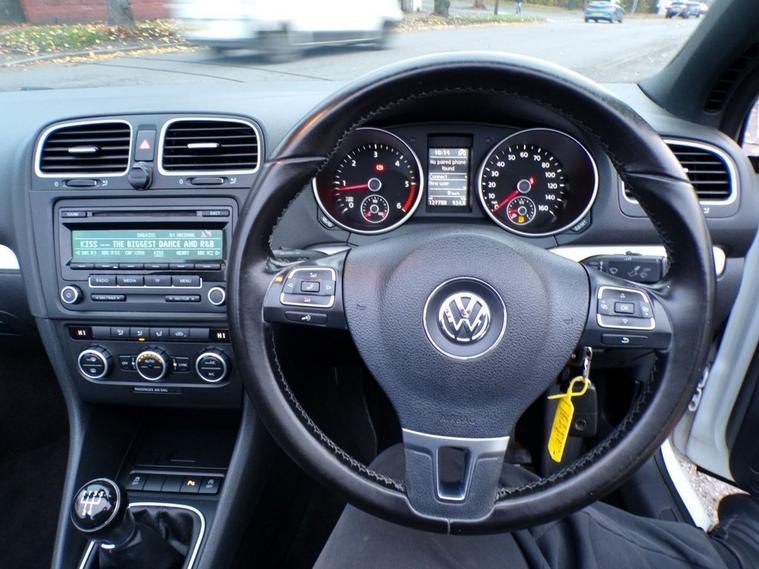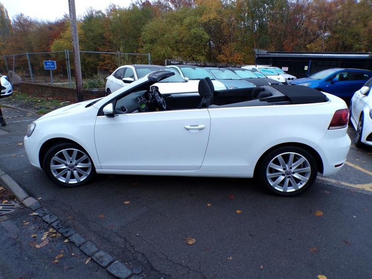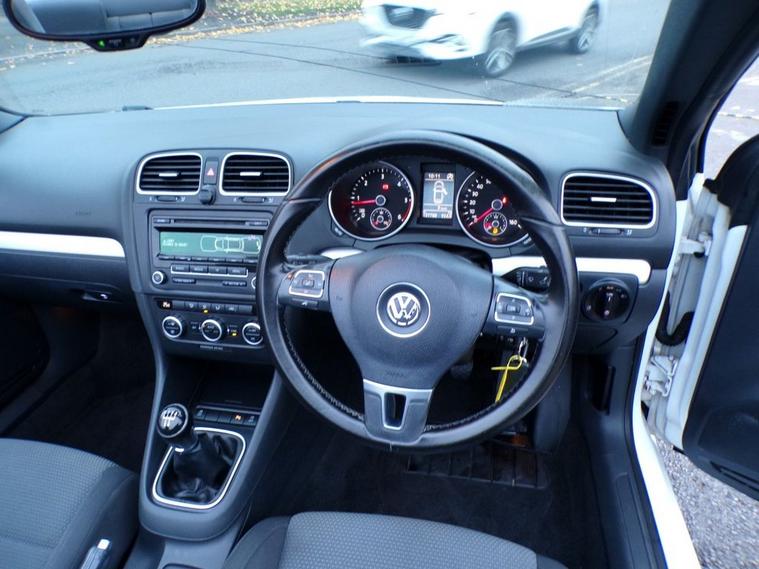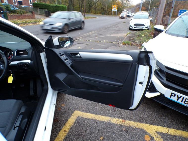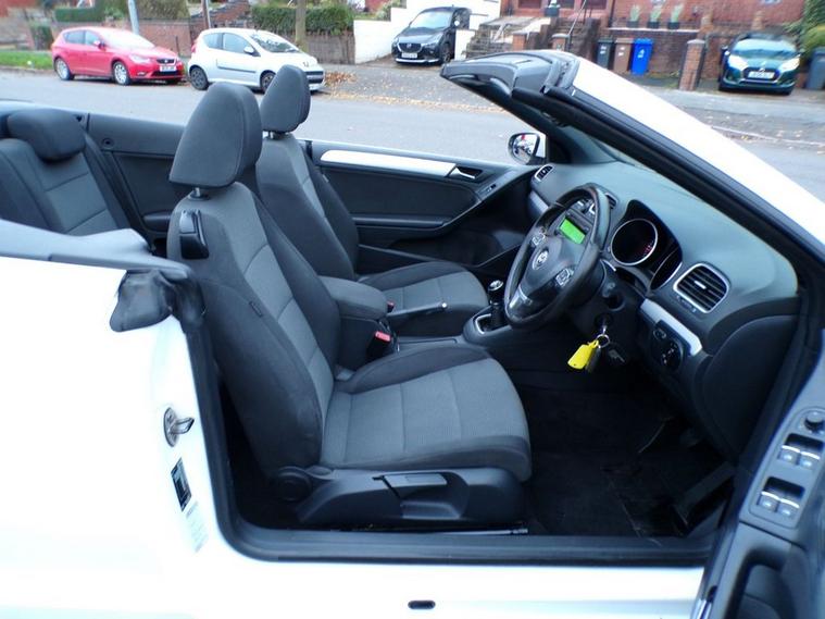 Nicely presented Golf SE Convertible finished in Pure White paintwork with contrasting Black Hood, this is a 2 owner car from new with the first owner being the supplying Volkswagen main dealer & the second keeper a private individual who has had the car since 2014, so just over 11 years in total. They have maintained the car to a very high standard during their ownership & the car boasts a fabulous service history with entries recorded at 4180, 11619, 17351, 24098, 36126, 56625, 63681, 72831, 95111, 110565 & 126853 miles respectively including a cam belt replacement recorded back in 2020 too. Cosmetically given the cars age & mileage it is in lovely overall order & offers a lovely trim level & specification that includes Full Electric Power Hood, DAB Radio, Bluetooth, Dual Zone Climate Control, Cruise Control, 17 Alloy Wheels, Front & Rear Parking Sensors, Daytime Running Lights, Privacy Glass, Auto Lights, Auto Wipers, Auto Dimming Interior Mirror & VW MDI to name just a few items. Overall this is a very tidy & clean example for its age with lovely history & just one owner in the last 11 years.