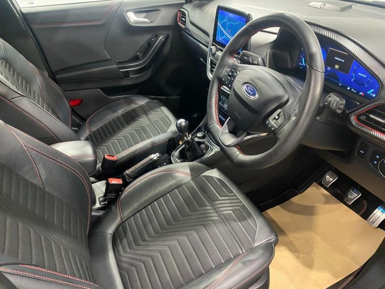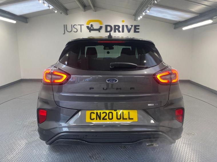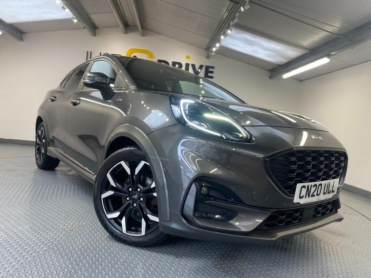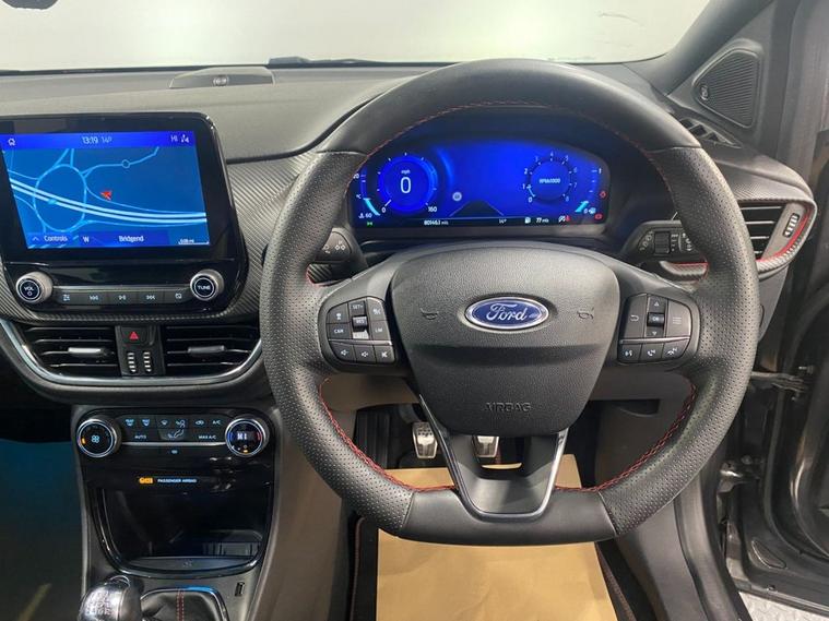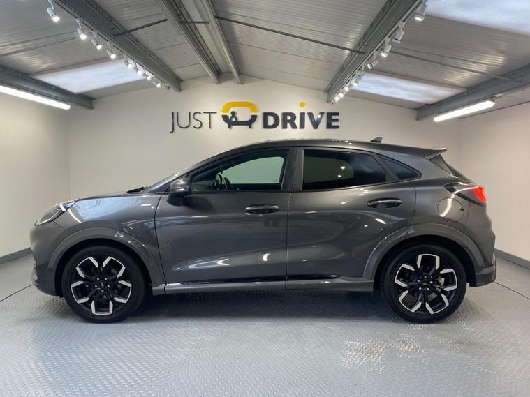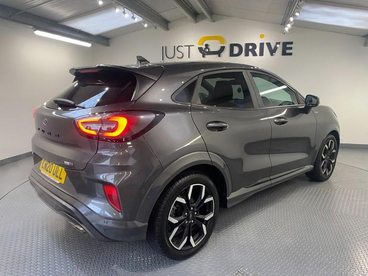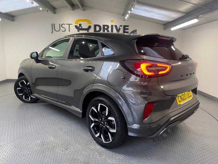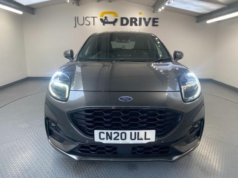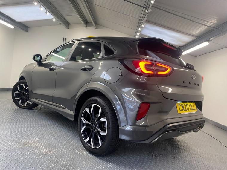 The Puma is fun to drive with a well-sorted chassis, cutting edge interior technology and very competitive fuel efficiency. The steering is sharp, the handling agile and it really is a standout compact SUV with an eye-catching design. Its finished in Magnetic Grey metallic and stands on clean 18 2-tone alloy wheels. The striking exterior is complete with ST-Line bodystyling, rear privacy glass and high level spoiler. Inside you get more toys than Hamleys - theres part leather sports seats with red stitching detail and the centre of the dash has Fords fantastic SYNC 3 media system with navigation, Bluetooth and DAB radio. The system also supports Apple CarPlay and Android Auto so music lovers are well catered for. The patented QuickClear heated windscreen is great for the Winter months, theres ice cold air conditioning for the warmer weather and reverse Park Pilot with audio alert together with a camera view make parking a breeze. Cruise, telephone and audio controls are easily accessed via the leather multi-function steering wheel. Powered by a lively 1.0 Ecoboost mild-hybrid engine theres a punchy 123 Bhp available and its ULEZ compliant.
