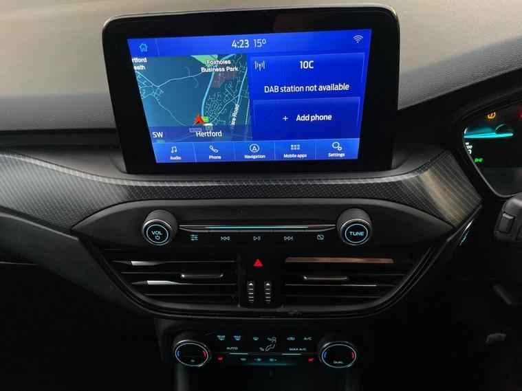 The Ford Focus 1.5 EcoBlue ST-Line X perfectly blends sporty styling, premium comfort, and outstanding efficiency. Powered by a refined 1.5-litre EcoBlue diesel engine producing 120 PS, it delivers impressive fuel economy and a smooth, responsive drive ideal for both urban journeys and motorway cruising. This ST-Line X model boasts a dynamic exterior, featuring 18-inch 5x2-spoke alloy wheels in machined black, a large body-coloured rear spoiler, red brake calipers, and the distinctive ST-Line bodystyling kit with unique upper and lower grilles. Stylish touches such as LED daytime running lights, LED front fog lights with cornering function, and rear privacy glass further enhance its athletic look. Inside, the cabin combines sportiness with sophistication. Youll find sports-style front seats with heating, 6-way power drivers seat adjustment, red-stitched upholstery, and a flat-bottom leather steering wheel. The 8-inch SYNC3 touchscreen infotainment system includes DAB navigation, Apple CarPlay and Android Auto, and FordPass Connect for seamless connectivity. Dual-zone climate control and an electric parking brake add extra comfort and convenience. Safety and driver assistance features are abundant, including Pre-Collision Assist with Autonomous Emergency Braking, Lane Keeping Aid, Intelligent Speed Assistance, Post-Collision Braking, front and rear parking sensors, and Quickclear heated windscreen. With sports-tuned suspension, the Focus ST-Line X delivers sharp handling and a genuinely enjoyable drive. For added peace of mind, if the MOT is under six months, well ensure a fresh MOT is completed before sale. The vehicle also comes with a standard three-month back-to-base warranty, with the option to extend it to a nationwide warranty for added reassurance. Nationwide delivery is also available. Finance Available Special 9.9% APR Offer We offer in-house finance with zero deposit options and flexible monthly payments. Apply in minutes and drive away the same day! For more details or to arrange a viewing, contact 02030183551 or email enquiries dealer's website