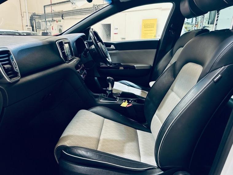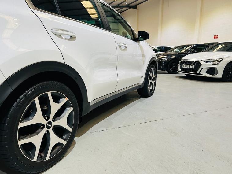 Kia Sportage 1.6 T-GDi GT-Line SUV 5dr Petrol Manual AWD Euro 6 (174 bhp) Registration: AJ66NXK | 58, 000 miles A sporty and versatile SUV offering turbocharged petrol performance, striking GT-Line styling and the reassurance of all-wheel drive. Powered by the 1.6 T-GDi engine producing 174 bhp and paired with a 6 speed manual gearbox, this Sportage delivers energetic performance with everyday practicality. Fully Euro 6 compliant, making it ULEZ friendly. The GT-Line trim adds premium features, athletic design details and a refined interior, making this Sportage an ideal choice for those wanting style, capability and comfort in one complete package. Key Features 1.6 litre T-GDi turbo petrol engine producing 174 bhp 6 speed manual transmission with AWD capability Euro 6 ULEZ compliant GT-Line styling with sportier design enhancements Premium interior with heated seats and advanced infotainment Reversing camera and parking sensors LED daytime running lights and sporty alloy wheels Spacious 5 door SUV with flexible boot space Additional Information 58, 000 miles covered Excellent mix of performance, practicality and comfort Combined MPG around 38 mpg (depending on driving conditions) 0 to 62 mph in around 9 seconds Distinctive GT-Line styling with everyday usability
