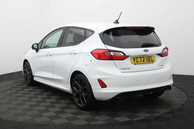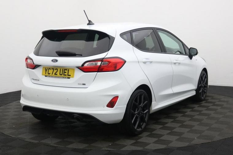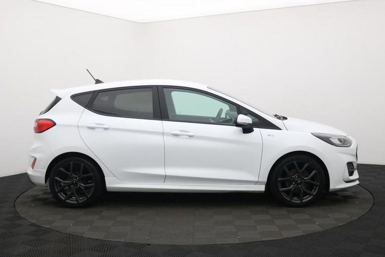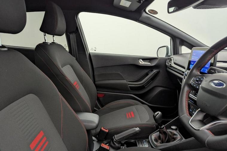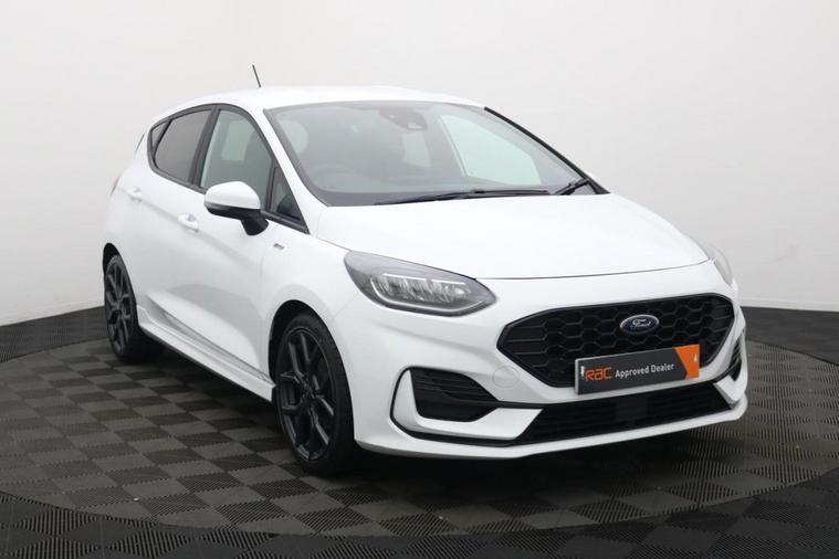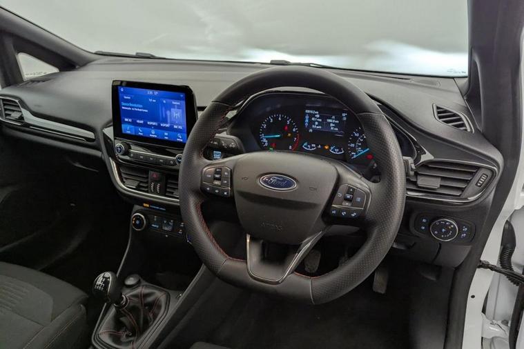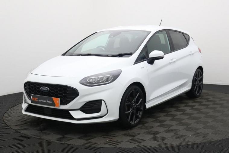Henson Car Store presents the FORD FIESTA 1.0T EcoBoost MHEV ST-Line Edition Hatchback 5dr Petrol Manual Euro 6 (s/s) finished in White, this car comes with service history. This 2022 Ford Fiesta 1.0T EcoBoost MHEV ST-Line Edition Hatchback is a stylish and efficient compact car that perfectly blends sporty design with everyday practicality. Powered by a responsive 1.0-litre EcoBoost mild-hybrid petrol engine paired with a smooth 6-speed manual gearbox, it delivers an engaging drive while maintaining excellent fuel efficiency and low emissions, meeting Euro 6 standards. Finished in Fords distinctive ST-Line styling, this model features sleek aerodynamic lines, a sporty body kit, 17-inch alloy wheels, and a bold honeycomb grille that give it a dynamic and athletic look. The interior continues the sporty theme with red stitching, ST-Line branded sports seats, a flat-bottom steering wheel, and high-quality materials throughout, providing a premium yet comfortable cabin environment. Equipped with modern technology, the Fiesta ST-Line Edition includes Fords SYNC 3 infotainment system with an 8-inch touchscreen, Apple CarPlay and Android Auto connectivity, Bluetooth, and voice control for seamless access to media and navigation. Safety and convenience features such as rear parking sensors, lane-keeping assist, cruise control, automatic headlights, and keyless start enhance the driving experience.