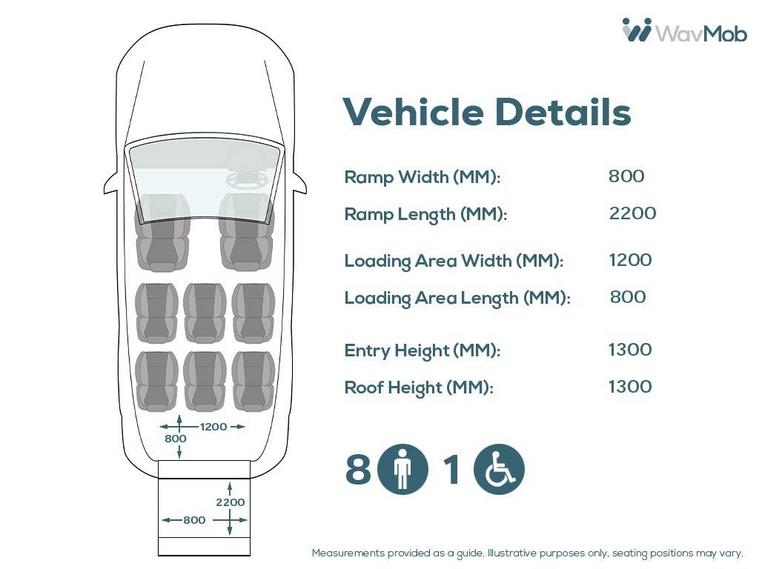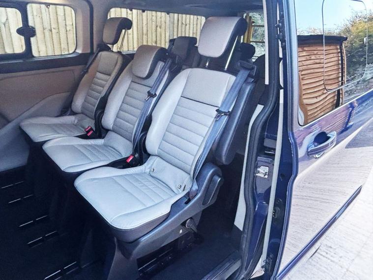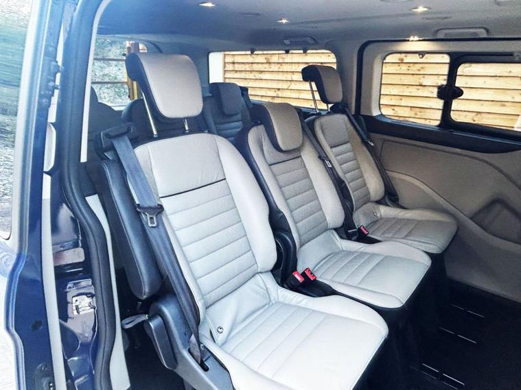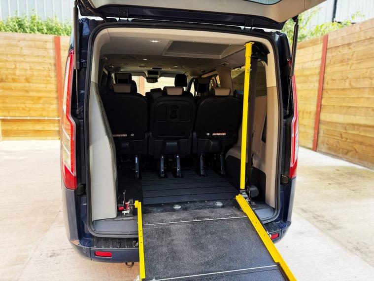 This McElmeel Mobility converted Ford Custom Tourneo Wheelchair Accessible Vehicle (WAV) has 8 Seats (2 Front and 6 Rear). Equipment includes Wheelchair Ramp, Leather Interior, Air Conditioning, Electric Front Windows, Electric Adjustable Wing Mirrors, Power Steering, Remote Central Locking, Tinted Rear Windows.