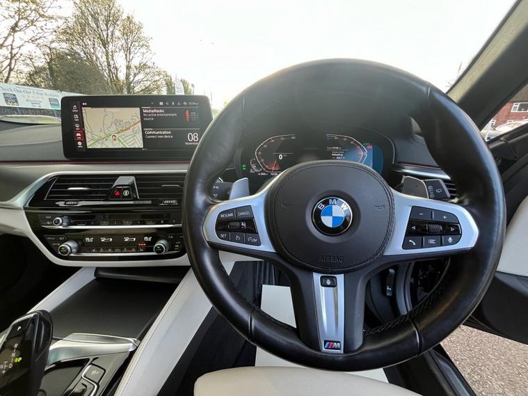 This 2022 BMW 5 Series 520d M Sport benefits from a full dealership service history, with its last service completed on 18th June 2025, and comes with a clear vehicle history check. This Euro 6 compliant model features a 2.0L Diesel Hybrid engine and is presented in the M Sport trim. It includes a 6 month warranty and a 12 month MOT will be provided on purchase. Notable features include a Panoramic Glass Sunroof with opening function, the Technology Package which adds a Head Up Display and a Premium Branded Sound System, and the Comfort Package offering Keyless Entry, Seats with Memory function, and a Heated Steering Wheel. The M Sport Pro Package further enhances its appeal. The inclusion of the Technology and Comfort Packages, alongside the M Sport Pro Package, clearly sets this BMW 5 Series apart from other similar vehicles. The Panoramic Glass Sunroof brings an open and airy feel to the cabin, while the Head Up Display keeps essential driving information within your line of sight. Enjoy the convenience of Keyless Entry and the added comfort of a Heated Steering Wheel and memory seats, perfect for any journey. The 2.0L Diesel Hybrid engine offers an efficient yet powerful driving experience, making this 520d M Sport a well equipped and desirable choice.