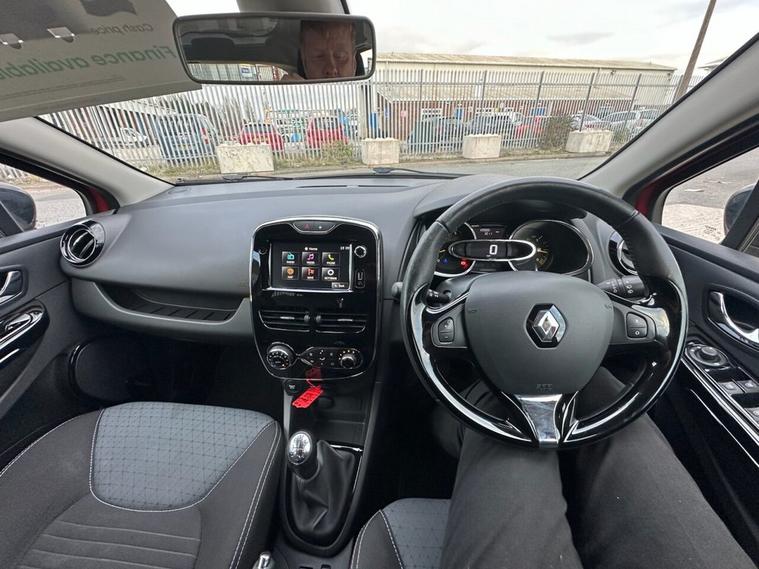 May 2014 Renault Clio 1.5 DCI Dynamique S MediaNav 90PS 5 door Sport Hatch. The car has covered 109k miles with 4 services carried out and recorded. Road tax is just £20 for 12 months Insurance group 13E and the car returns 71mpg urban, 88mpg extra-urban, 83mpg combined. The car is finished in gleaming metallic flame red with dark cloth trim. The car has had 2 owners from new and the car has had 5 services in total with the last being for the sale. The clio combines style, economy and reliability and is amazing value for money. This example is the Dynamique model so the car has a high specification that includes power steering, multi function steering wheel, ISOFIX car seat anchorage points front & rear, 5 seats, rear wiper, 17 alloy gloss black wheels, climate control, air conditioning, parking sensors, HDD Satellite Navigation, electric windows x4, electric mirrors with power fold, remote central locking, parcel shelf, auxiliary heating, Fog Lights, Keyless Entry & Start, Bass Reflex Hi-Fi Upgrade, On Board Computer, Rear Wiper, Gloss Black Rear Diffuser, Side Trims & mirrors, Cruise Control, Steering Colum Audio Controls, Start/Stop, Piano Black Dashboard Trims, 5 Speed Manual Transmission, ECO Mode, USB/AUX Inputs, Cupholders, Multiple Airbags