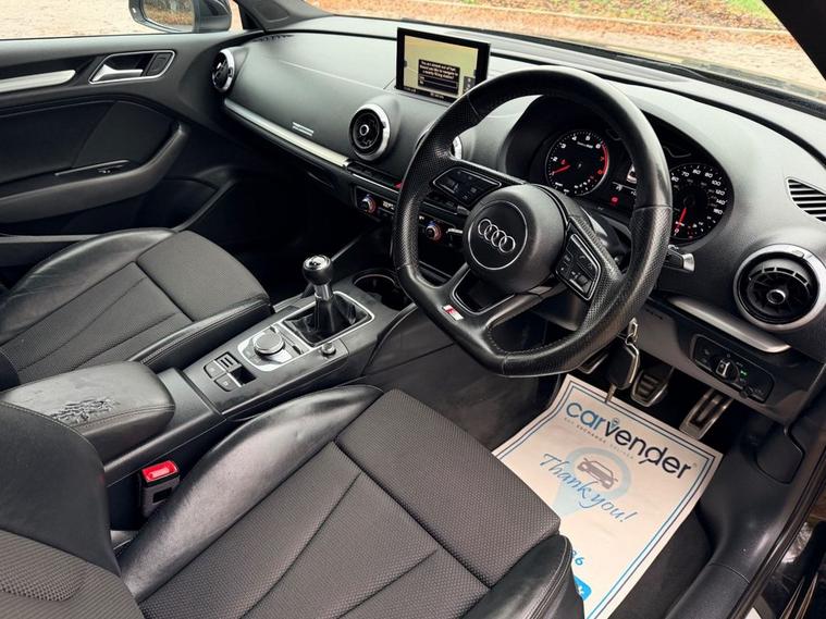 At Carvender we are introducing the 2019 Audi A3 1.5 TFSI CoD S Line 4dr. This Audi A3 is a compact luxury Saloon that redefines performance and style. This Audi A3 is powered by a turbocharged 1.5 litre engine which delivers an impressive 150 brake horsepower. This A3 with its sleek and sophisticated design exudes elegance and sportiness from every angle. The trim level enhances its dynamic appearance with distinctive sporty body styling, and signature Audi design cues. The 2019 Audi A3 is equipped with modern features including Sensors, SatNav, Half Leather Seats, Cruise Control, AC, Entertainment Screen With Mobile Connection and much more. Please refer to advert photos to discover more features. This Audi A3 has been looked after very well. Services have been carried out at the mileages of 12361 and 53640 on 10/11/2025 Do not miss the opportunity to own this exceptional car contact us today to schedule a test drive or visit our website for home delivery with 14 days change of mind.