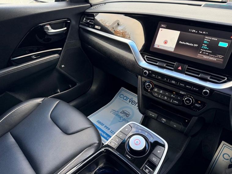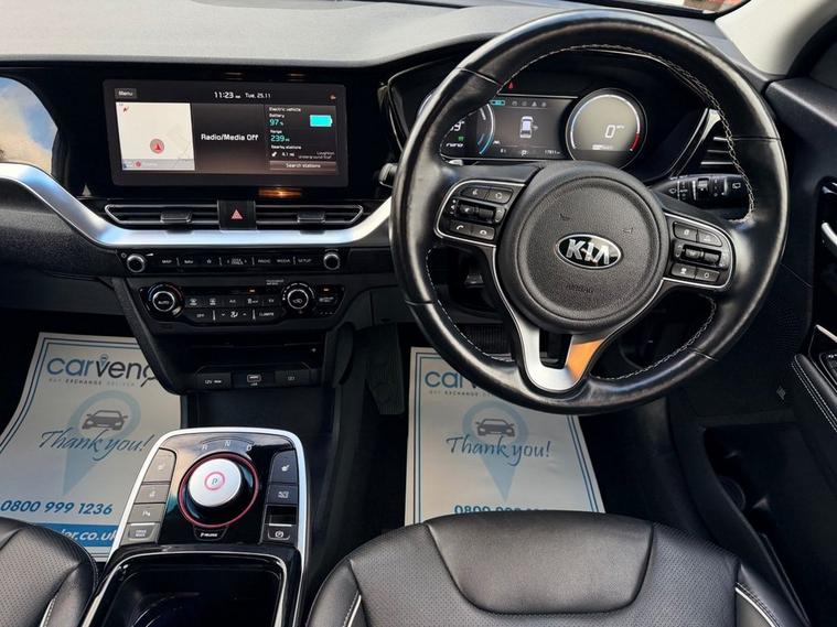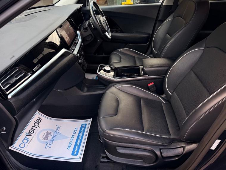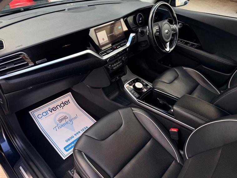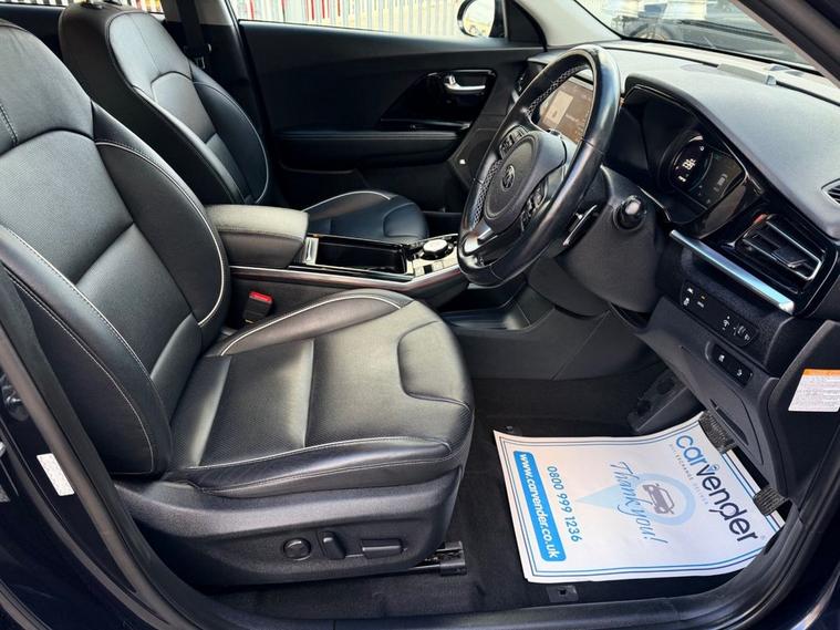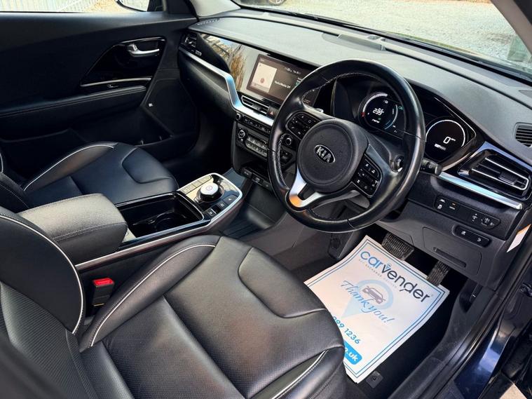 Carvender is presenting the all electric 2020 Kia Niro 64kWh 4 5dr. The 2020 Kia Niro is a well-maintained SUV. This compact car offers a perfect combination of style, efficiency and practicality, making it an excellent choice for daily commuting and urban driving. The Kia Niro is equipped with a 64kWh electric motor which delivers a smooth and efficient driving experience and generates 201 Brake Horse Power. This Kia Niro is equipped with modern features including Front and Rear Parking Sensors, Reversing Camera, Leather Heated Seats, Lane Assist, Adaptive Cruise Control, Heated Steering, Satellite Navigation, Apple CarPlay/Android Auto and a touchscreen infotainment system with Bluetooth and much more. Please refer to advert photos for more features. This Kia is in pristine condition and has been look after very well. Last serviced at 17910 miles on 20/11/2025. Contact us today to schedule a test drive or visit our website for home delivery with a 14 days money back guarantee.