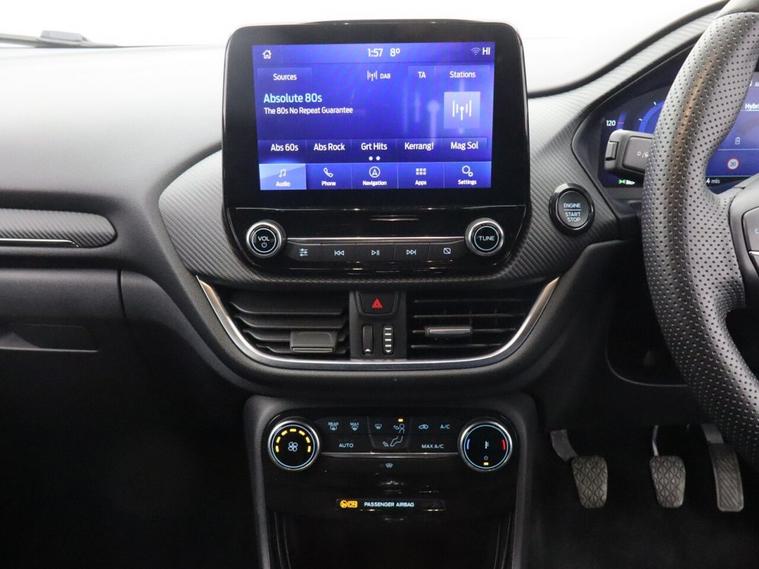 This 2022 Ford Puma ST-Line X is a superb example, having had only one owner since new. This stylish compact SUV is powered by an efficient 1.0L Petrol Hybrid engine, meeting Euro 6 emission standards. Inside, youll find a host of convenient features designed for modern driving, including a wireless charging pad integrated with electronic air temperature control for effortless climate management. For added peace of mind, rear parking sensors assist with manoeuvring, while the B&O Premium Audio System, coupled with Ford SYNC 3 Navigation, offers an immersive entertainment and connectivity experience, complete with Android Auto and Apple CarPlay. The Ford Puma ST-Line X stands out with its impressive fuel economy, achieving a remarkable 52 miles per gallon, and its low CO2 emissions, indicating a more environmentally conscious choice compared to many similar vehicles. This combination of efficient hybrid technology, advanced comfort and entertainment features, and excellent fuel efficiency makes this particular Puma a compelling option for those seeking a well equipped and economical drive.