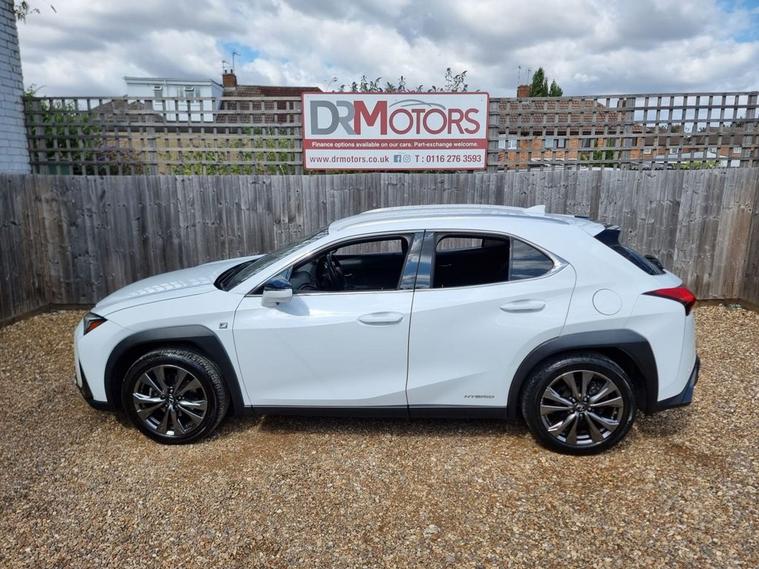 Lexus UX 250h F Sport SUV Petrol Hybrid Automatic - NOVEMBER SPECIAL OFFER - 18 MONTHS NATIONWIDE GOLD WARRANTY Available now with 18 Months Nationwide Gold Warranty included in the price, this stunning Lexus UX 2.0 250h F Sport offers exceptional value, performance, and efficiency. Finished in a striking colour combination and presented in excellent condition inside and out, this vehicle has had just one former keeper from new and is ULEZ compliant, making it perfect for city and long-distance driving. This car comes with a full service history, boasting seven recorded services, and is MOTd until July 2026, offering peace of mind for the next owner. Being a petrol hybrid, it delivers impressive fuel efficiency and low running costs. Features include satellite navigation, a rear parking camera, front and rear parking sensors, Bluetooth handsfree, cruise control, DAB radio, and USB/AUX connectivity. Inside, youll find heated half leather Alcantara electric seats and a heated steering wheel, adding comfort and luxury. It also features 18-inch alloy wheels, privacy glass, and a spacious boot. This is a very well-maintained and stylish SUV that drives beautifully. Its great value for money and, given its condition and spec, the first to see will buy. We offer flexible finance options, and you can view more details or apply directly through our website at dealer's website Part exchange is welcome, and all our cars are HPI and Experian clear. Debit cards accepted, and were happy to take a deposit to secure the vehicle. Were proud to have been awarded CarGurus Top Rated Dealer for 2020, 2021 & 2022. With over 150 DR Approved Used Cars in stock, youre sure to find the perfect vehicle with us. Please note: an admin fee of £149 applies to all vehicle purchases. Viewings are by appointment only, so please call our Sales Manager Jason on 01163432804 to arrange a test drive or for more information. Every effort has been made to ensure the accuracy of the above information, but please check with a member of staff to confirm any details that may affect your decision to purchase.