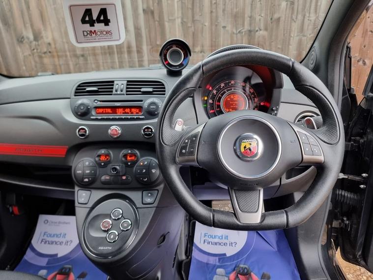 ABARTH 595 1.4 T-Jet Competizione Hatchback 3dr Petrol Auto +++ NOVEMBER SPECIAL OFFER 18 MONTHS NATIONWIDE GOLD WARRANTY INCLUDED IN THE PRICE +++ This stunning Abarth 595 Competizione offers the perfect mix of performance, style, and practicality. Finished in a beautiful colour combination and presented in excellent condition inside and out, this low-mileage example is sure to impress the first person who sees it. The car features an automatic gearbox and is fully ULEZ compliant, making it ideal for city driving. It comes with a strong service history consisting of five recorded services, and the MOT runs until October 2026 for total peace of mind. Equipment highlights include rear parking sensors, Bluetooth hands-free, USB/AUX connectivity, and striking 18-inch Bola alloy wheels with privacy glass. Its very fuel-efficient yet delivers the thrilling performance expected from an Abarth. Every car from DR Motors is fully Experian HPI clear and comes with a nationwide 6-month Gold Warranty, which can be upgraded to 1 year for £399 or 2 years for £599. For this month only, enjoy a special offer of 15 months warranty included free of charge. We have over 150 DR Approved Used Cars on site and are proud to have been awarded CarGurus Top Rated Dealer 2020, 2021, and 2022. Finance options are availableplease call us to discuss a package that suits you. Part exchange is welcome, and you can pay now and drive away the same day. Viewing is strictly by appointment only. To arrange a viewing or place a deposit, please contact Jason, our Sales Manager, on 01163432804. Visit our website at dealer's website for more details and finance options. At DR MOTORS, we take pride in being both a Trading Standards Approved Garage and an AA Approved Dealer clear recognition of our commitment to quality, integrity, and customer satisfaction. Each car includes: 12 Months Free AA Breakdown Cover Please note: an admin charge of £149 applies to all vehicles. Every effort has been made to ensure the accuracy of this advert, but please confirm all details with a salesperson before purchase.