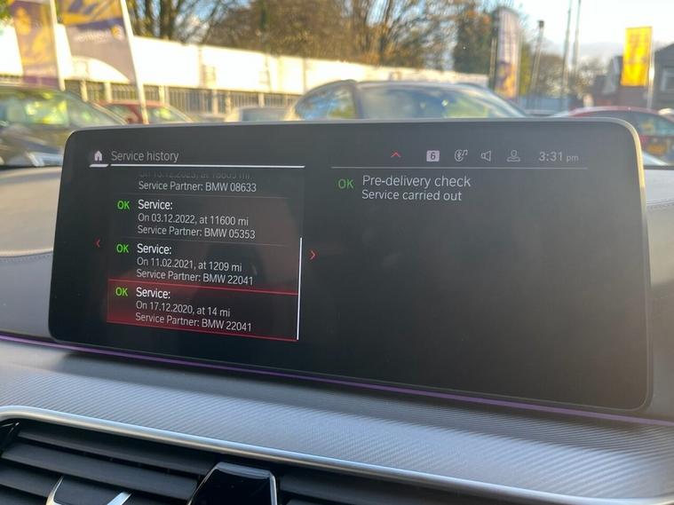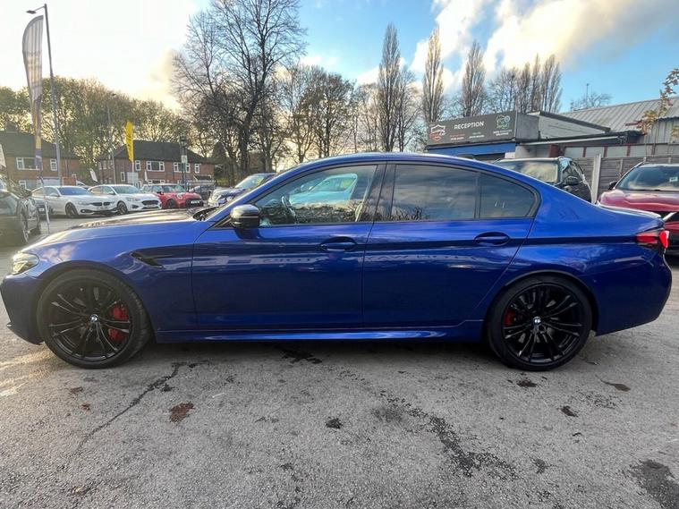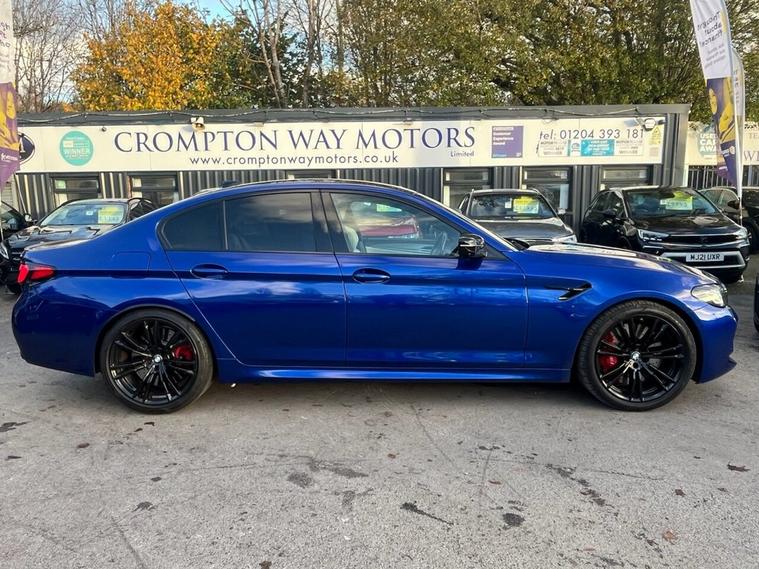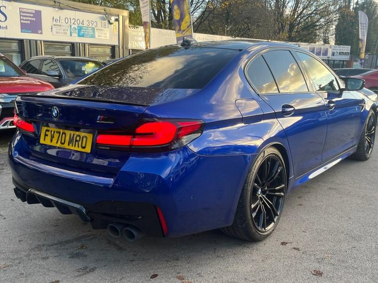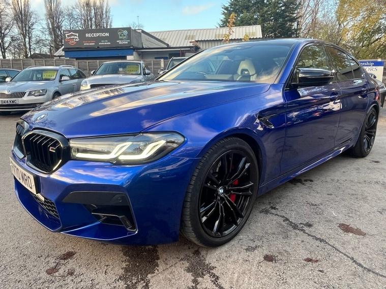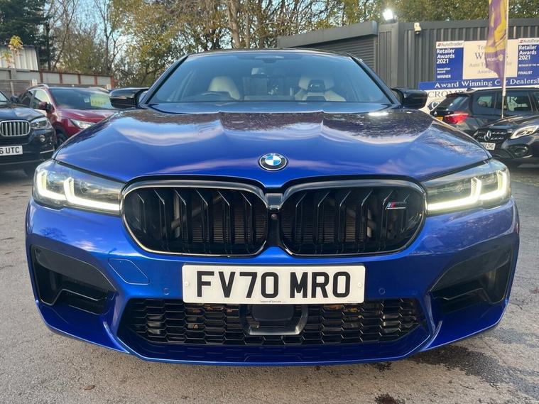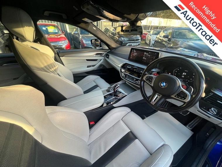 This 2020 BMW M5 i V8 Competition boasts a full dealership service history, with its last service completed on 2025-09-09 at 32, 331 miles, and comes with a clear vehicle history check. This exceptional saloon features a powerful 4.4L V8 petrol engine, a sophisticated four wheel drive system, and meets Euro 6 emission standards. The Competition trim level enhances its performance credentials, while the Technology Plus Pack adds Blind Spot Assistance and a luxury branded sound system. Further enhancing the driving experience are the BMW Connected Package Professional, offering Android Auto and Apple CarPlay, and automatic four zone climate control for ultimate comfort. The M5 i V8 Competition delivers exhilarating performance, accelerating from 0 to 60mph in a remarkable 3.3 seconds, showcasing its superior engineering. This vehicle is equipped with Telephony with Wireless Charging and Bluetooth, ensuring seamless connectivity on the go. For added peace of mind, it includes a 6 month warranty and a 12 month MOT provided on purchase. These features collectively indicate how this BMW M5 offers a more refined and capable driving experience compared to other vehicles in its class.